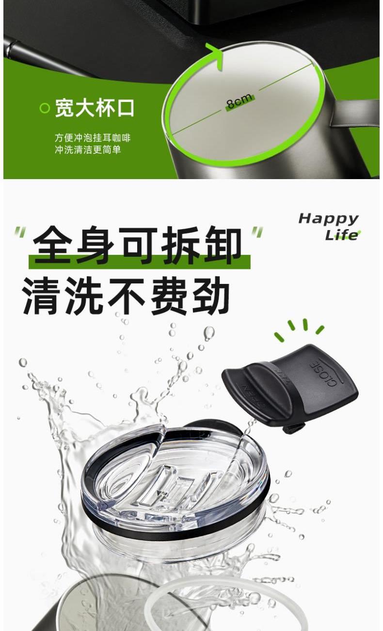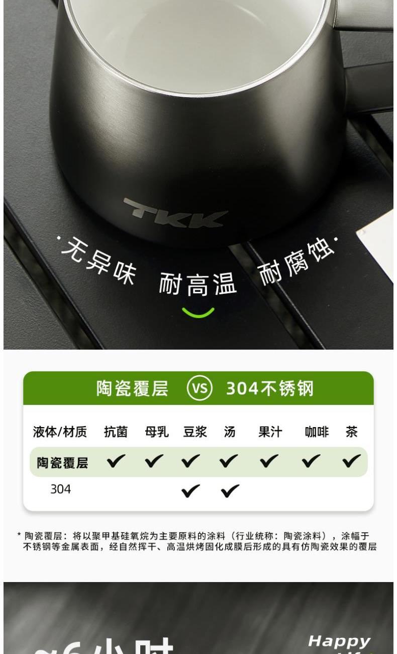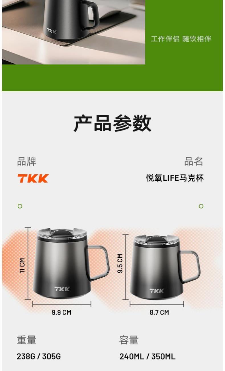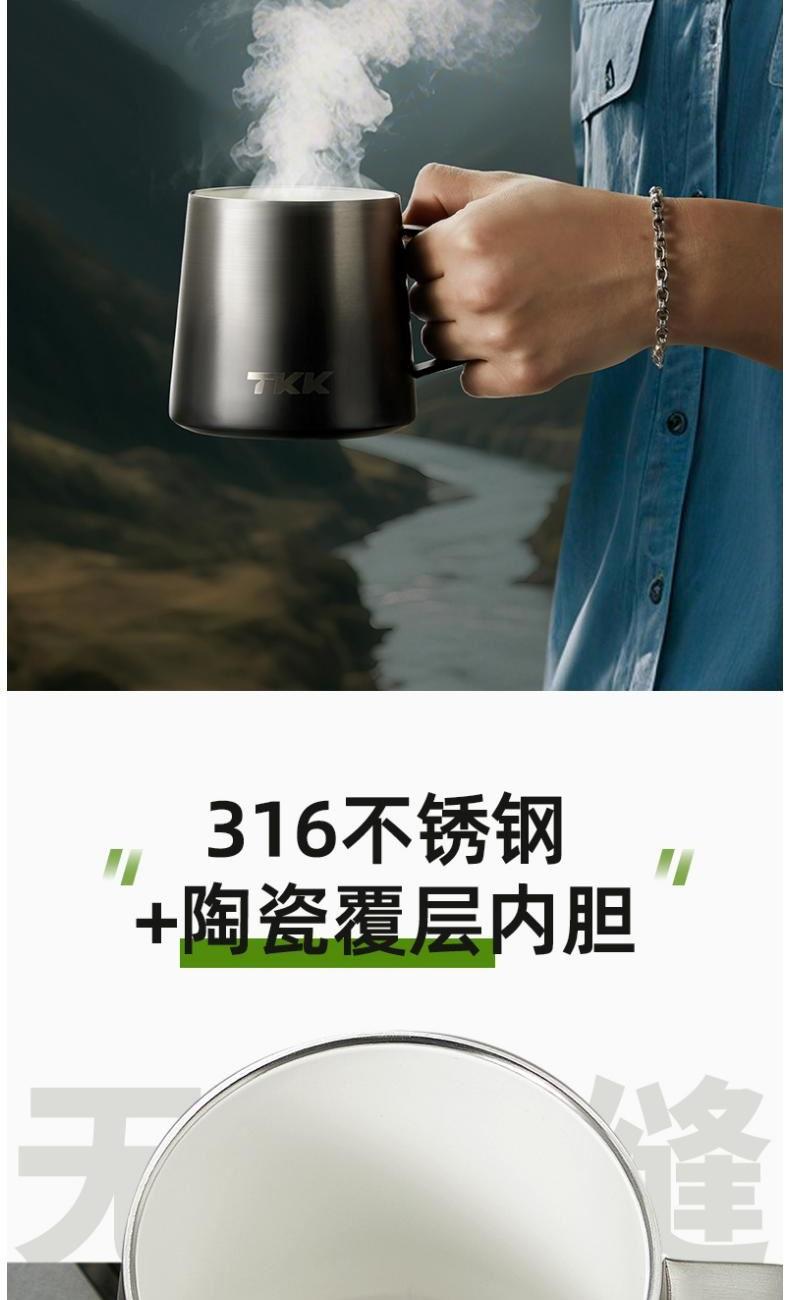 商品容量:240ml 杯身材质:316不锈钢 杯盖材质:PP+PC 商品净重:240g 1.316不锈钢用材内胆+陶瓷覆层,耐腐蚀 2.宽大杯口,方便冲泡挂耳咖啡,冲洗清洁更简单,泡饮不受限 3.体钢把手,宽握省力,一体钢铸 4.防滑硅胶垫,静音放置,防滑不易倒 5一键滑盖,直饮&敞饮多种饮水选择
