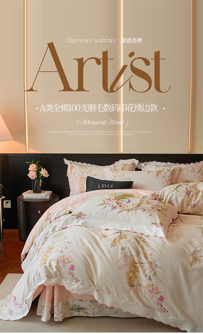 百丽安娜100支全棉数码磨毛四件套-枝霖