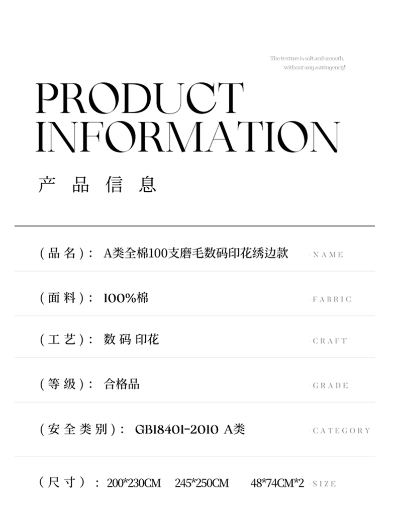 被套:200×230cm 床单:245×250cm 枕套:48×74cm 适用:1.5M-1.8M床 面料:全棉磨毛(棉) 工艺:绣边款 抚棉绒艺选材新疆棉 还原天然柔感,细腻与温柔邂逅,火山小磨毛,专研速保暖技术,看得见的真正温暖 燃爆寒冬。数码印花工艺,色彩鲜活灵动。