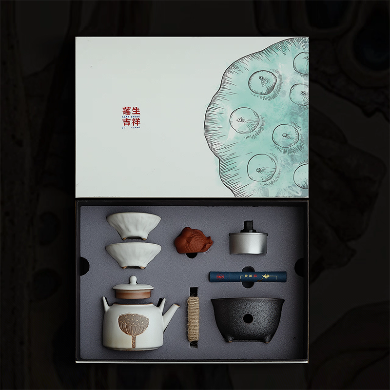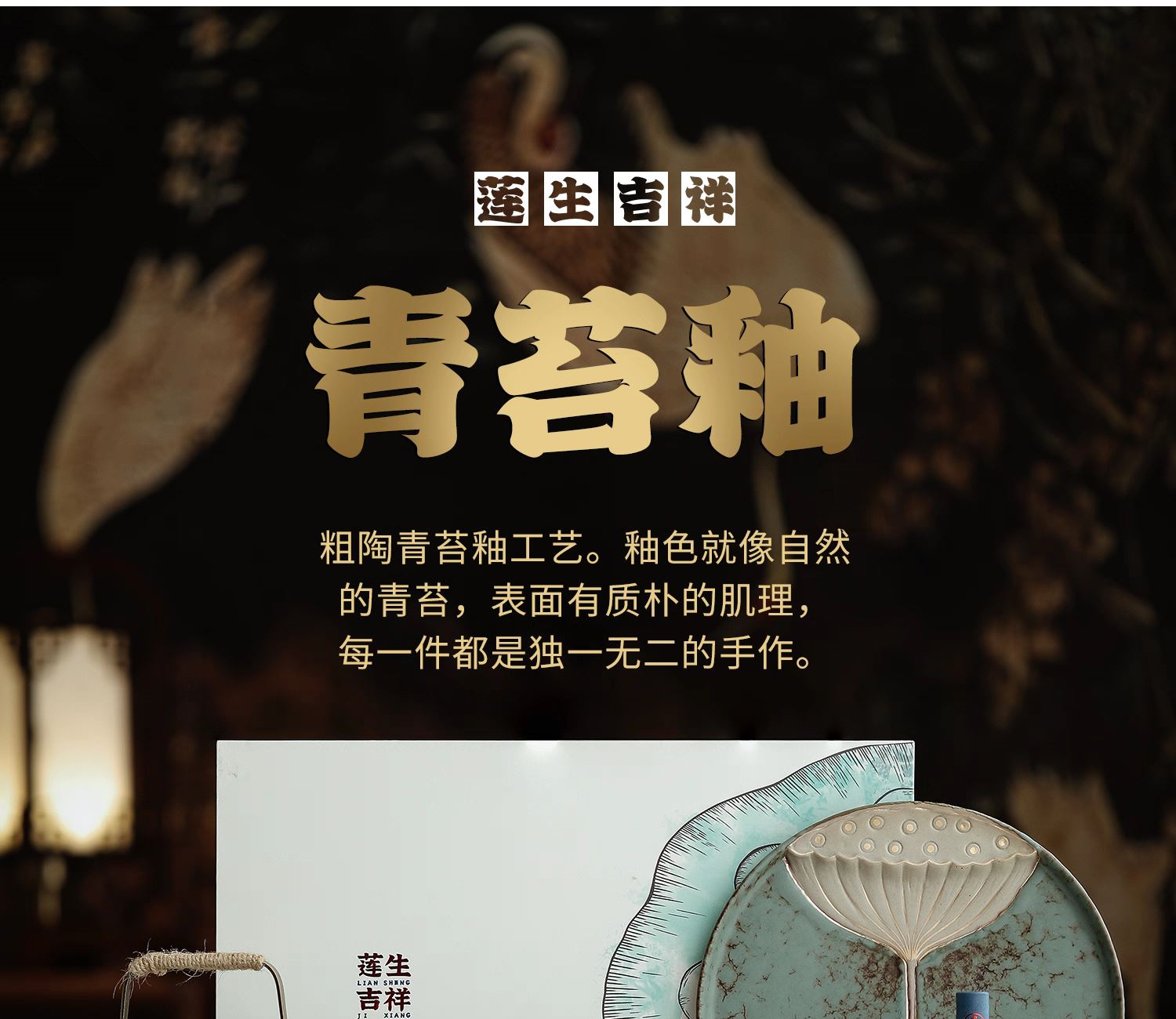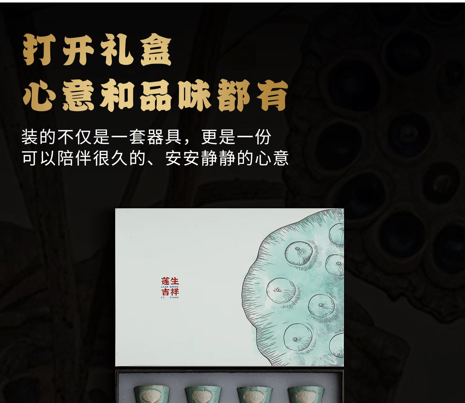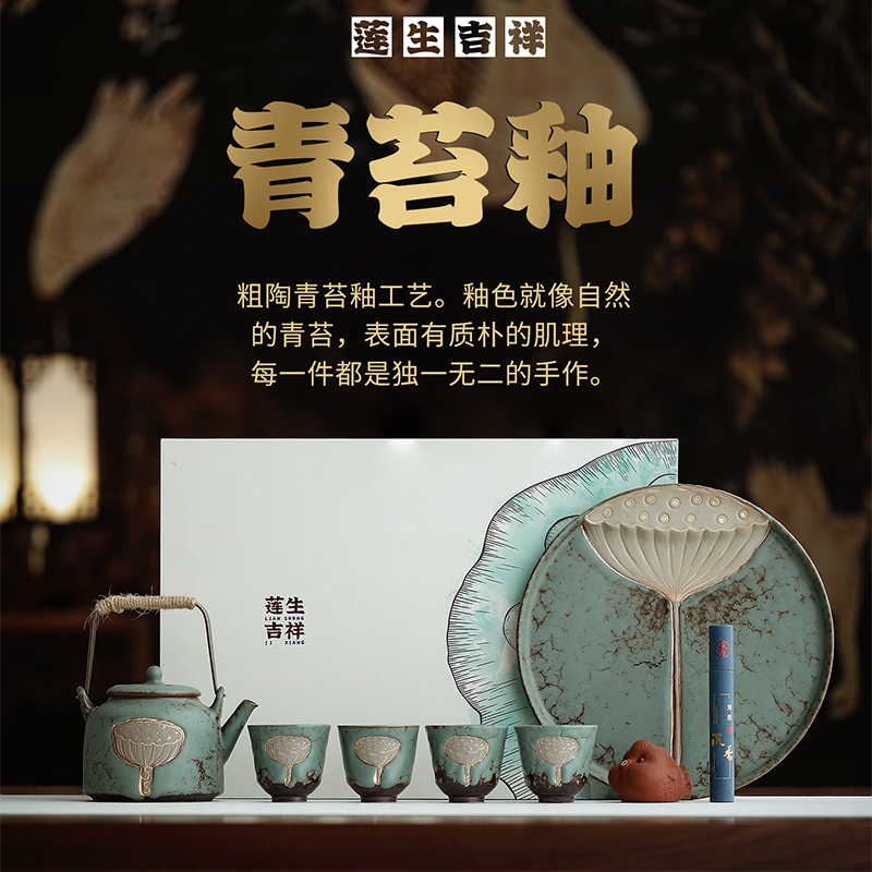 尾桥下窑青苔釉/雪岩泥莲生吉祥系列茶事套装年会伴手礼纪念品