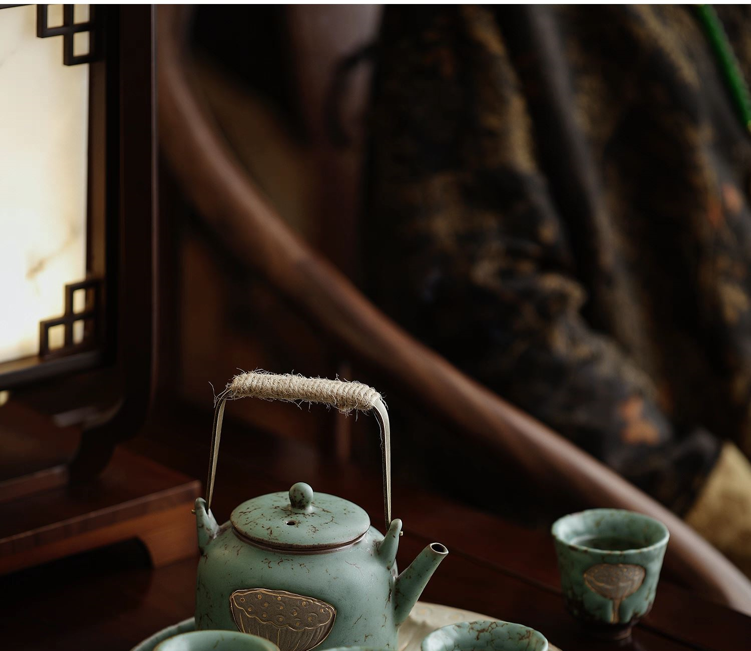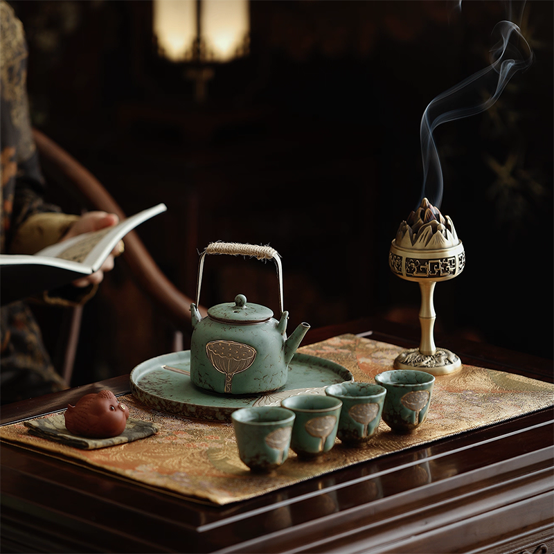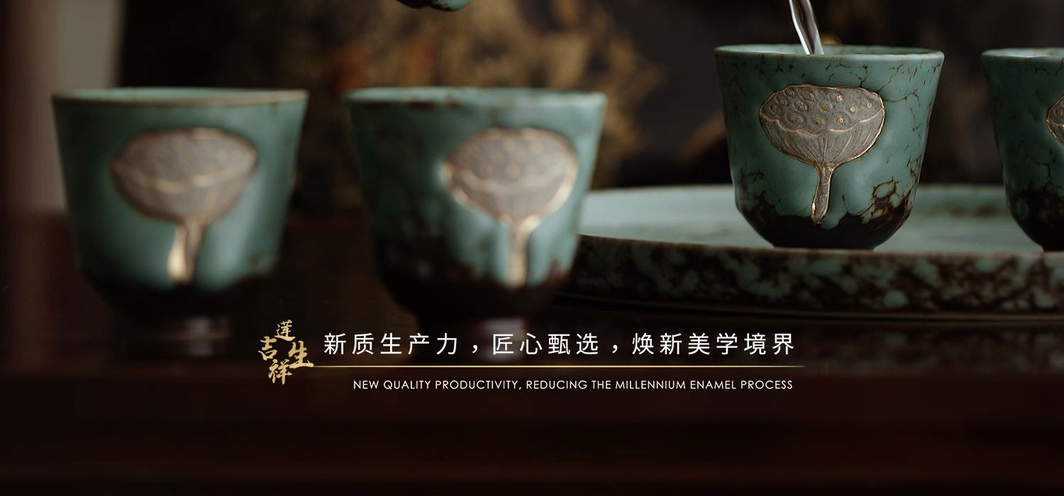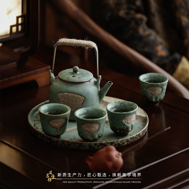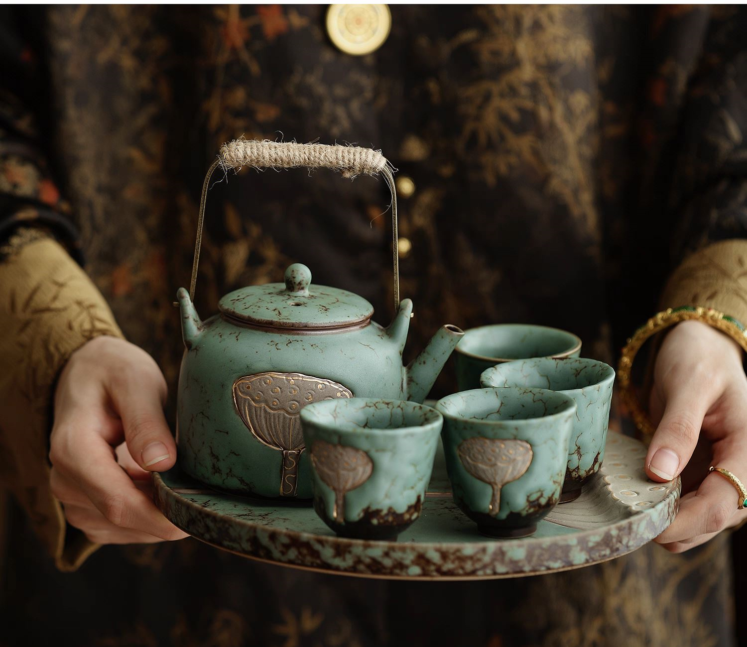 尾桥下窑青苔釉/雪岩泥莲生吉祥系列茶事套装年会伴手礼纪念品