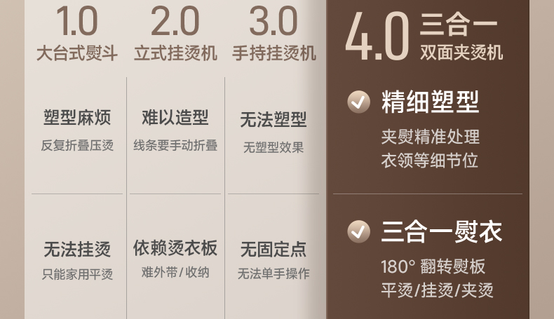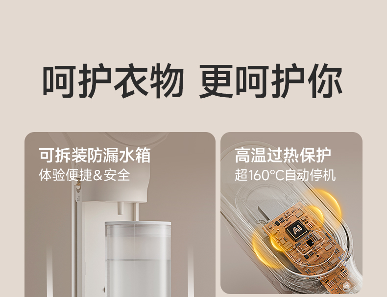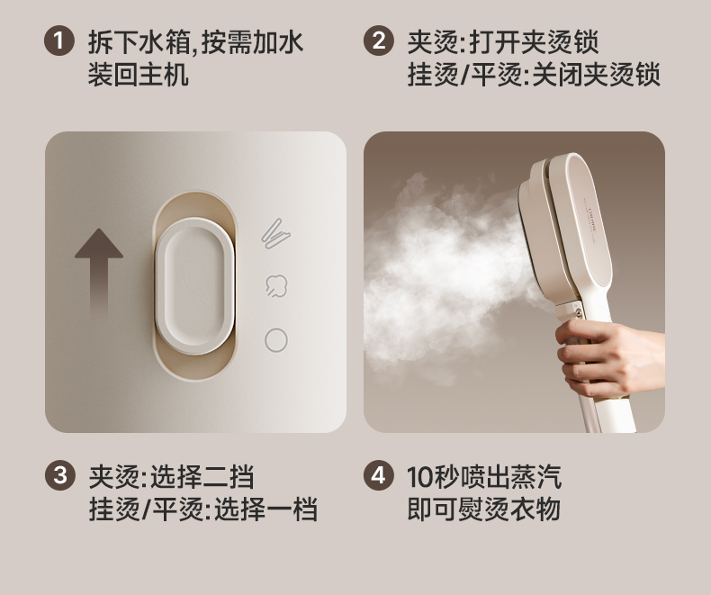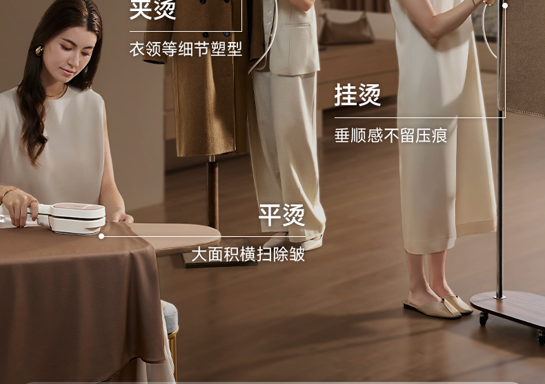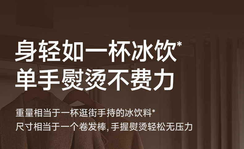 主要材质:PP+合金 电压:220V 功率:900W 水箱容量:80ml 1.双面夹烫,衣领衣角快速定型 2.大蒸汽挂烫,无需桌板,上手就可以烫衣 3.夹烫/挂烫,双模式自由切换 4.100-150°超高温 5.10秒出蒸汽,衣服快速定型 6.小巧便携,家用/差旅均适用 7.20g/min蒸汽量 8.2m电源线 9.标配量杯,加水方便