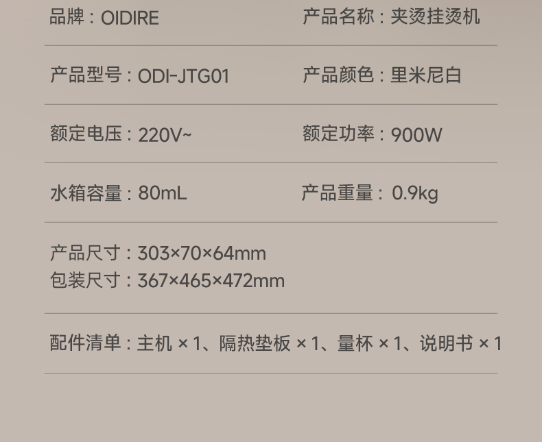 OIDIRE家用便携手持夹烫/挂烫机ODI-JTG01