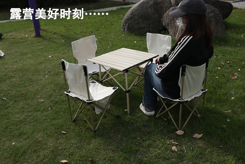 FTLY飞图乐铝合金米白折叠桌椅五件套ZDZY0100