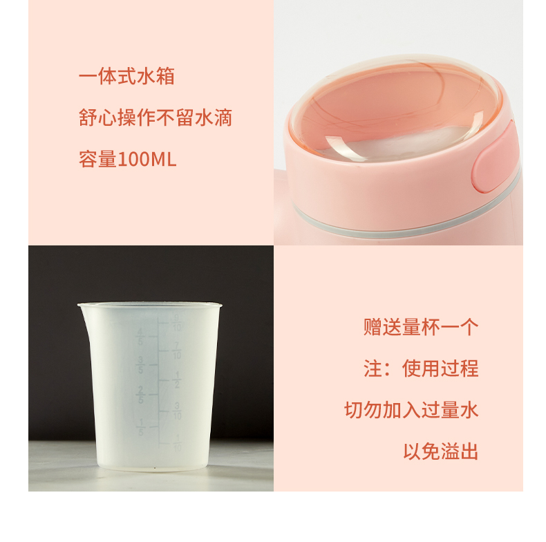 额定功率:1000W 额定电压:220V~ 额定容量:100ml 彩盒尺寸:165*110*270mm 外箱尺寸:350*460*560mm 条形码:6974396853080 装箱数:20 材质:PP