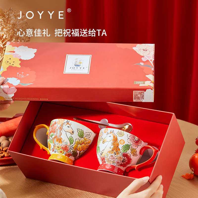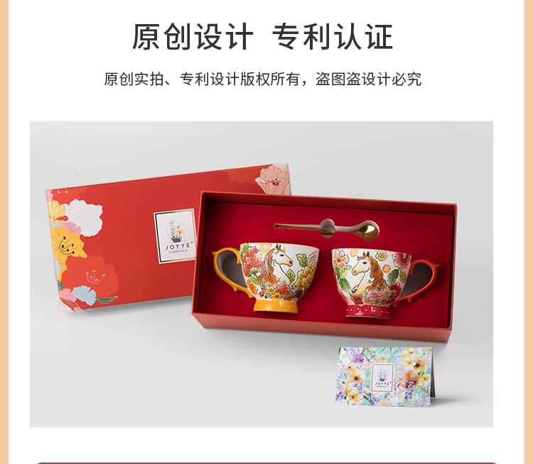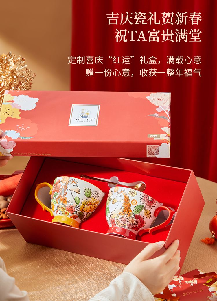 3.喜庆的红杯,以海棠谐音“满堂”,寓意阖家团圆,金玉满堂;尊贵大气的黄杯,以芙蓉谐音“富荣”,祝愿财富与荣耀兼得。