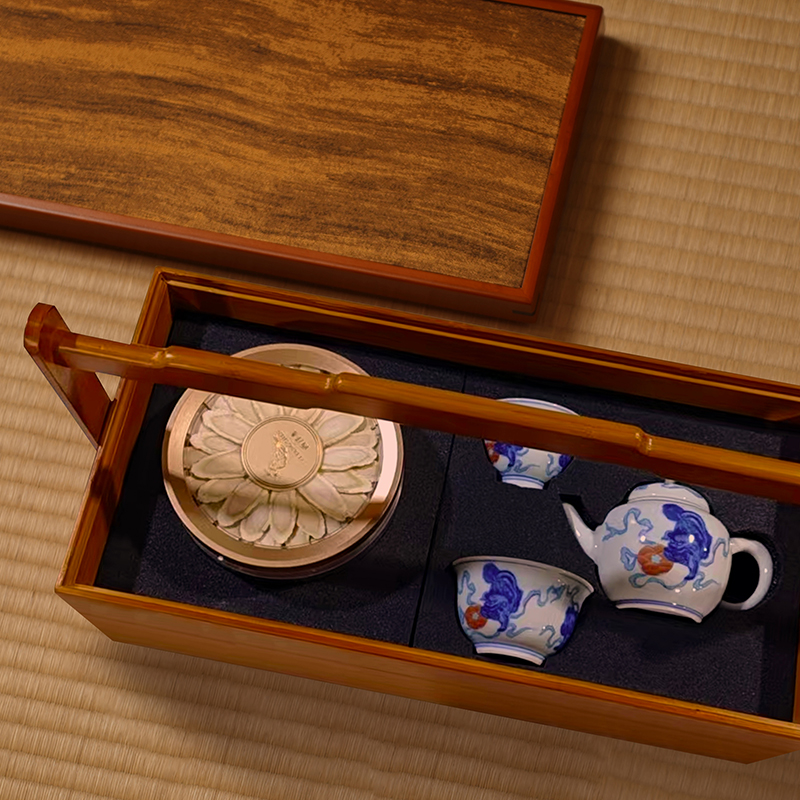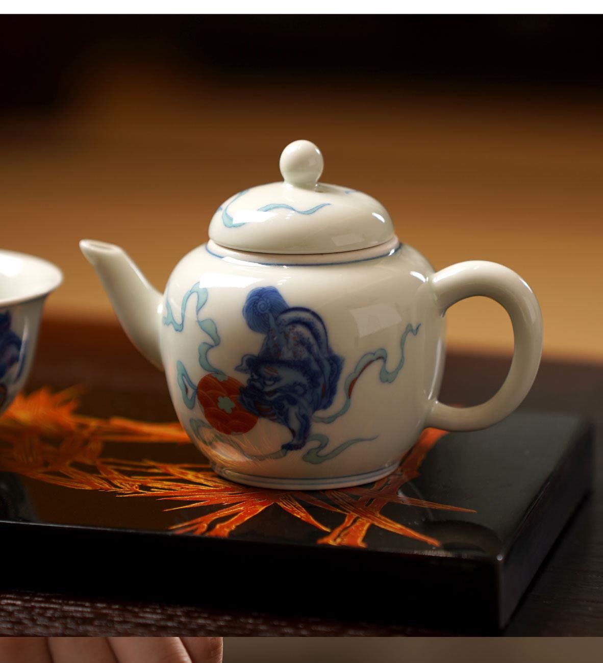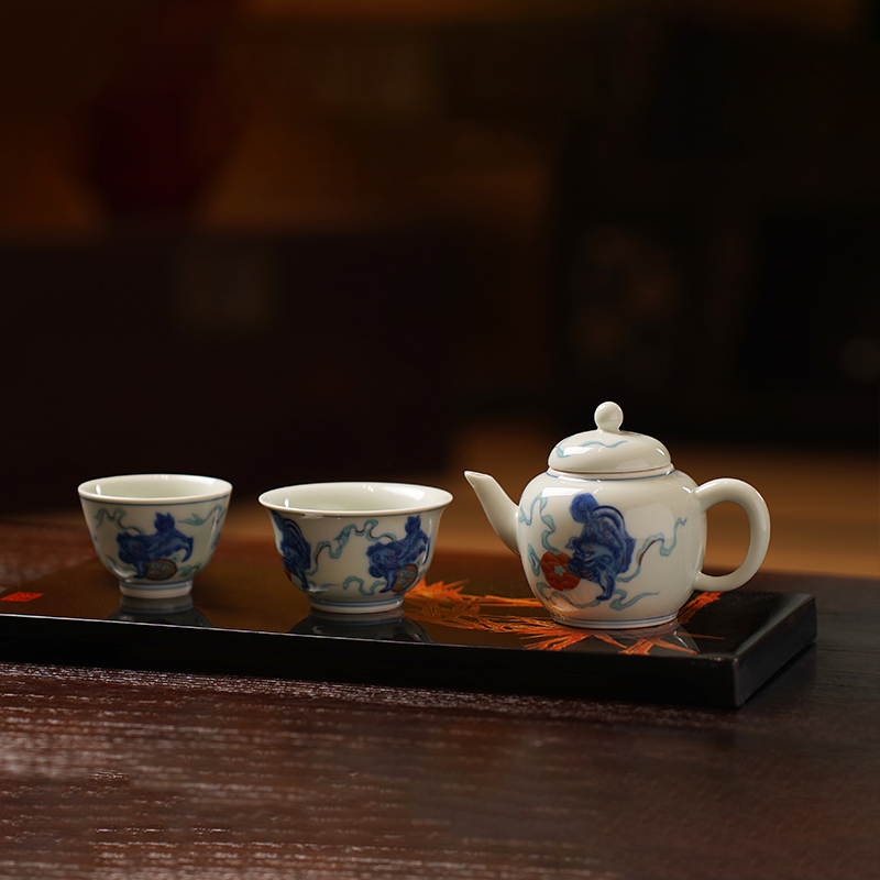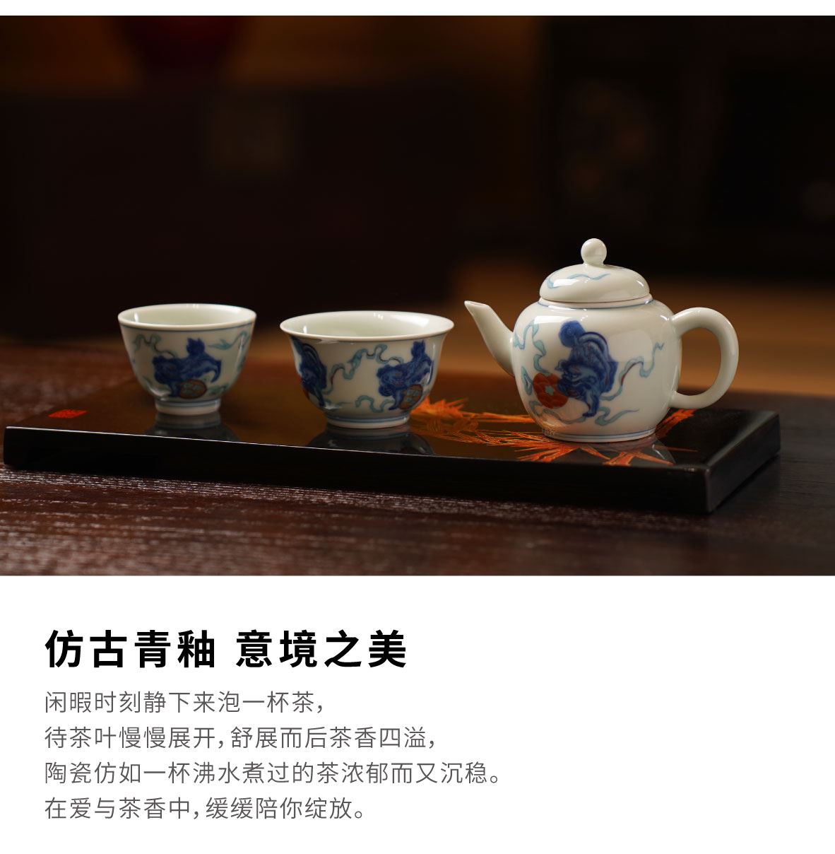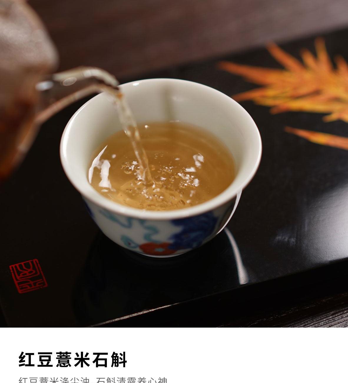 产品尺寸: 提篮: 385*180*215mm 茶壶:口径42mm、高度85mm 主人杯:口径75mm、高度45mm 品茗杯:口径60mm、高度88mm 茶叶总净含量:40g (红豆薏米石斛:10g/包,灵芝西洋参:5g/包) 产品配置: 竹制提篮x1,狮子戏球茶壶x1,狮子戏球主人杯x1, 狮子戏球品茗杯x1,红豆薏米石斛茶x2, 灵芝西洋参茶x4,西洋参x1