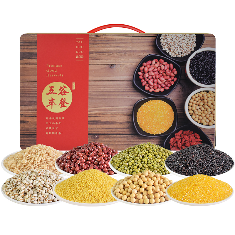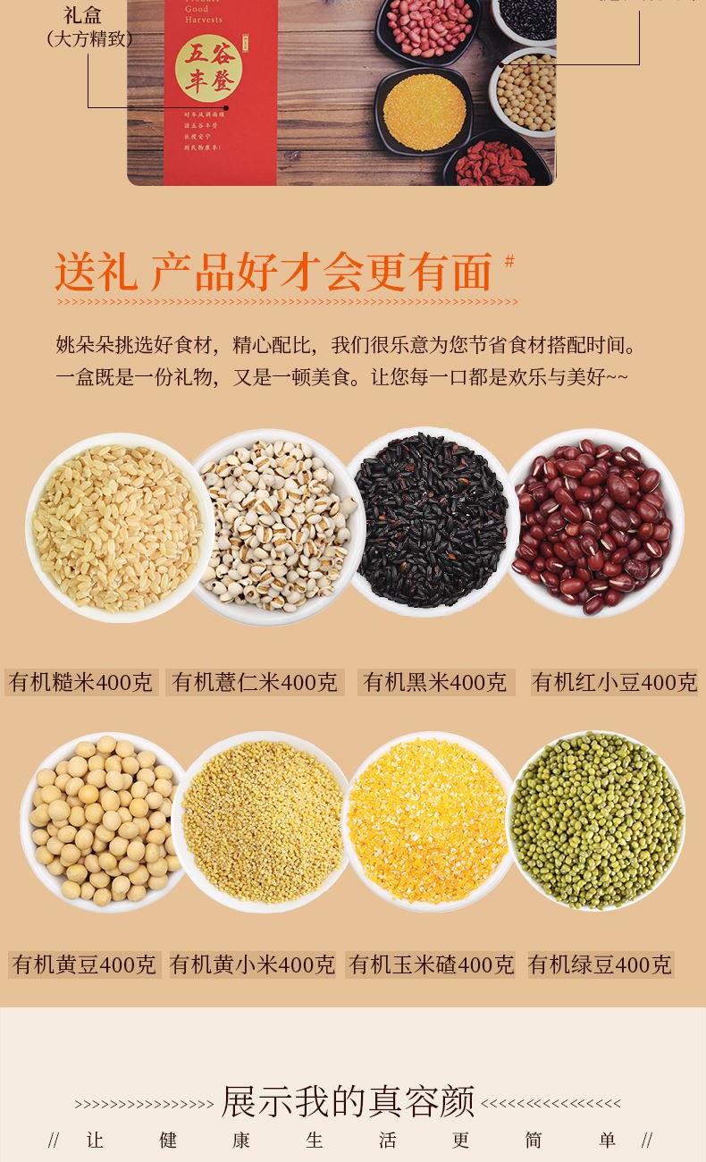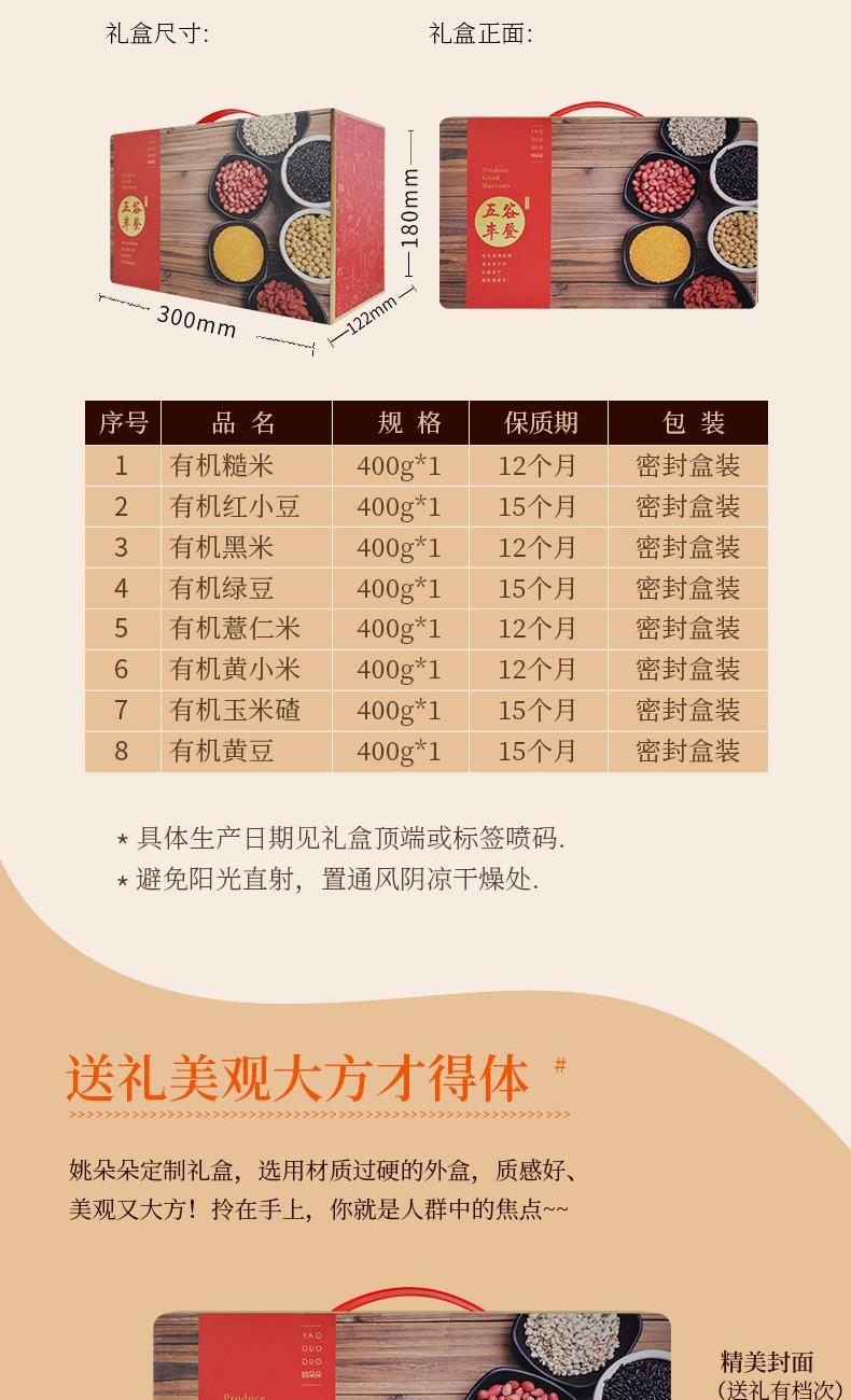有机红小豆400克 有机薏仁米400克 有机黄豆400克 有机玉米碴400克 有机黄小米400克 有机糙米400克 有机黑米400克 有机燕麦米400克 五谷丰登礼盒(红色)
