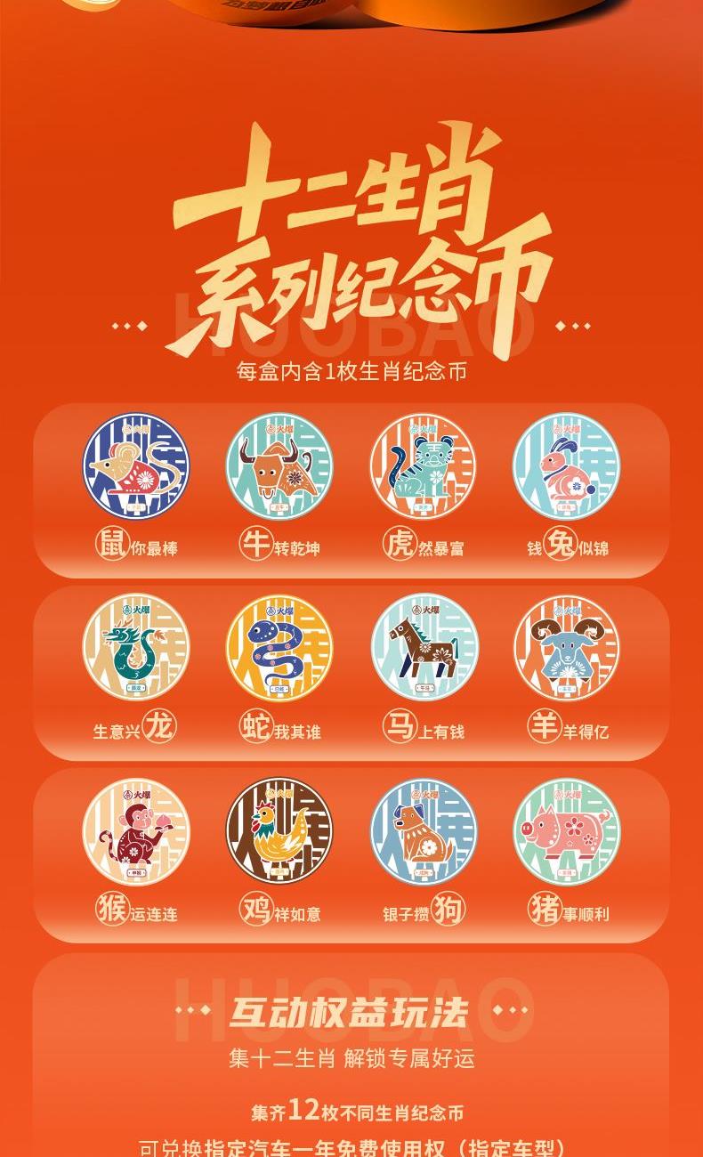 3 、限量生肖纪念币收集:集齐 1 2 枚生肖纪念币即可获得指定车型免费使用权