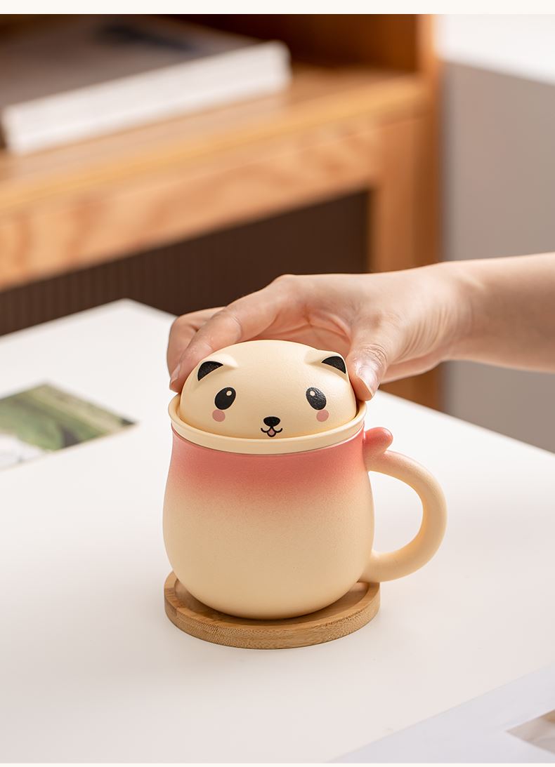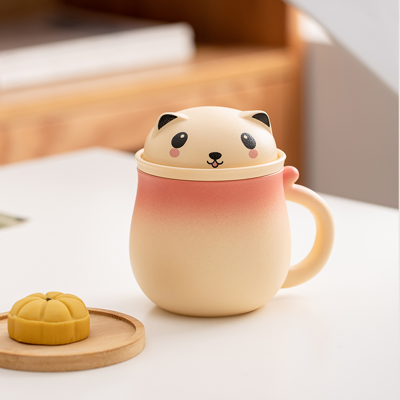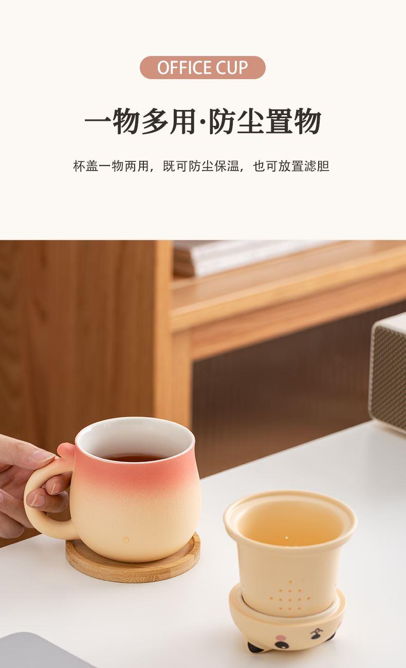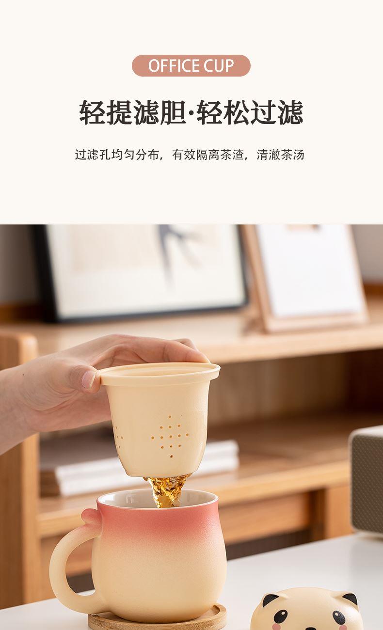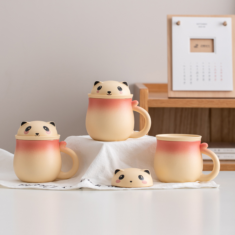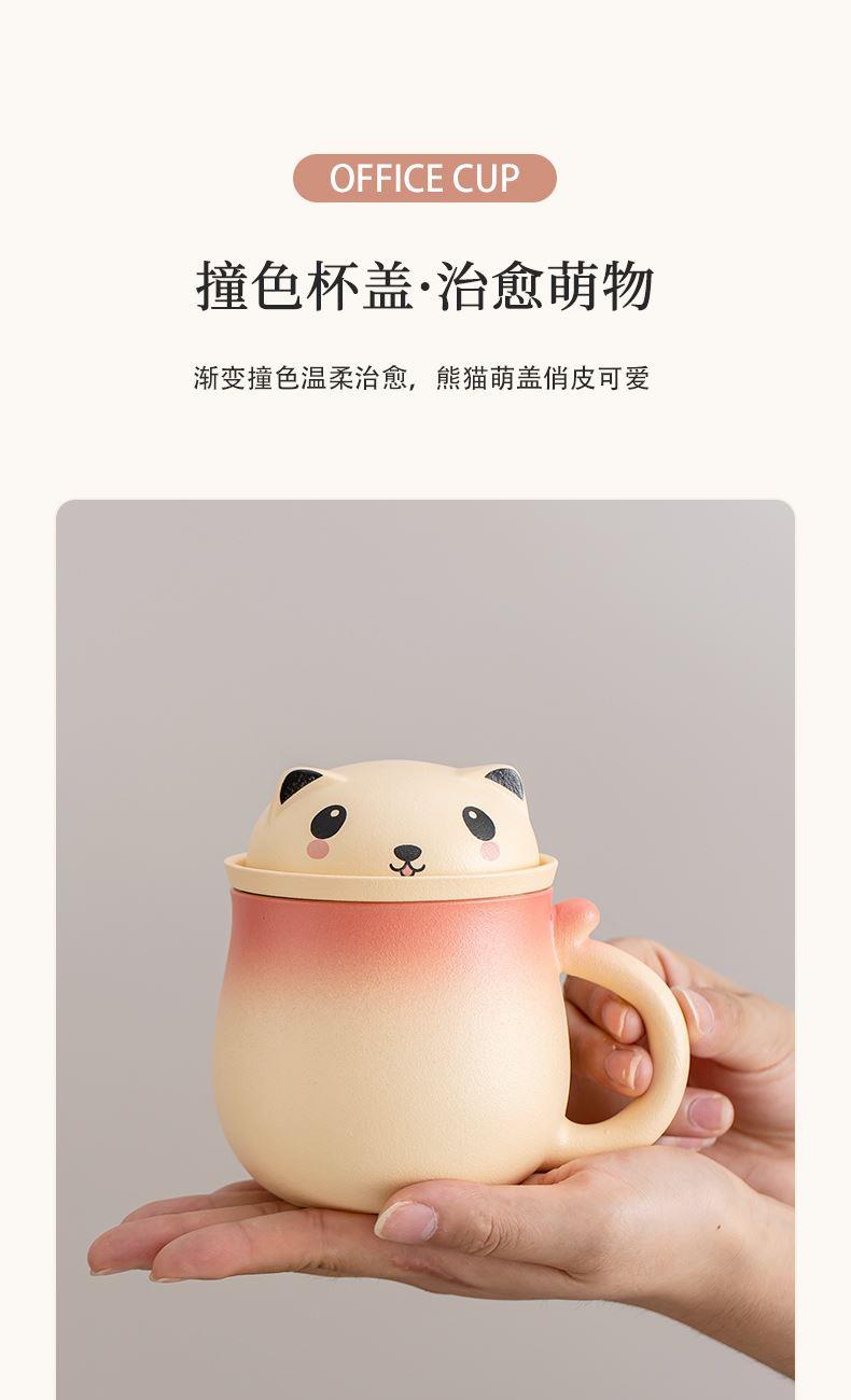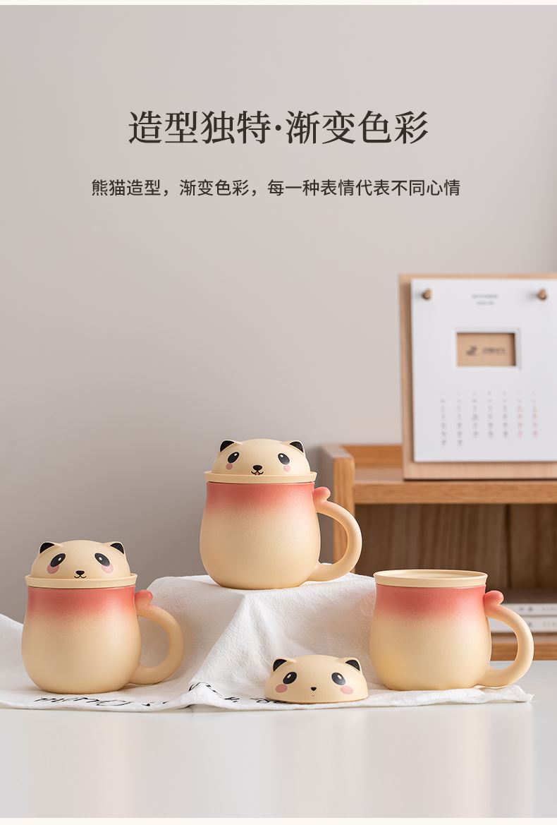 尾桥下窑渐变粗陶熊猫陶瓷办公水杯会议促销伴手礼开门红礼品