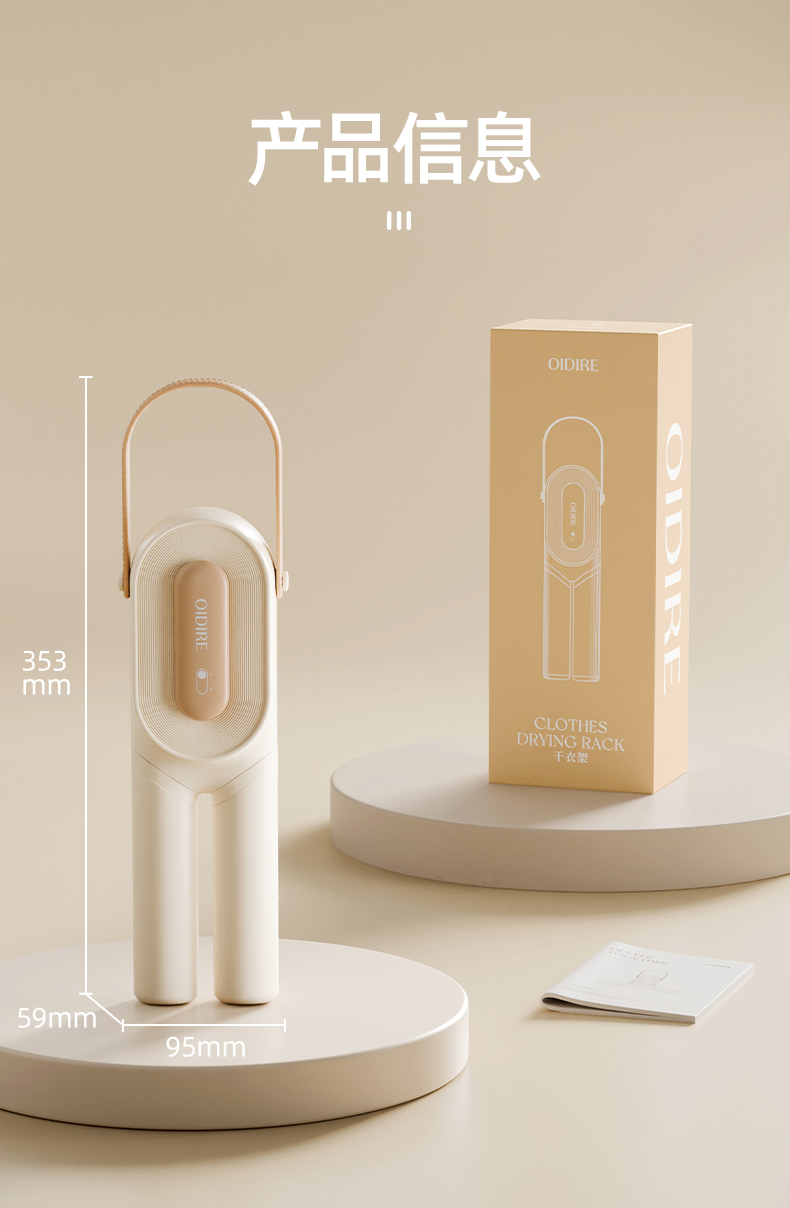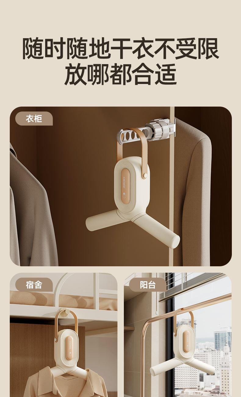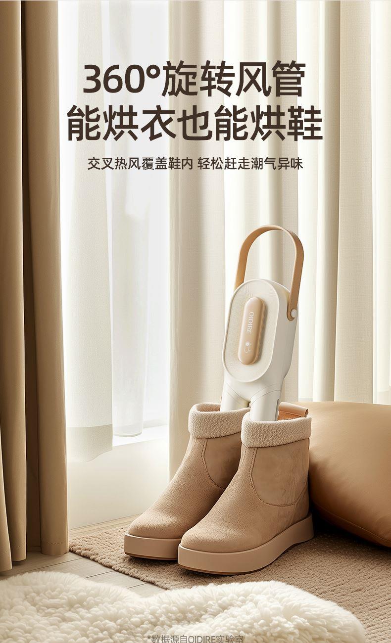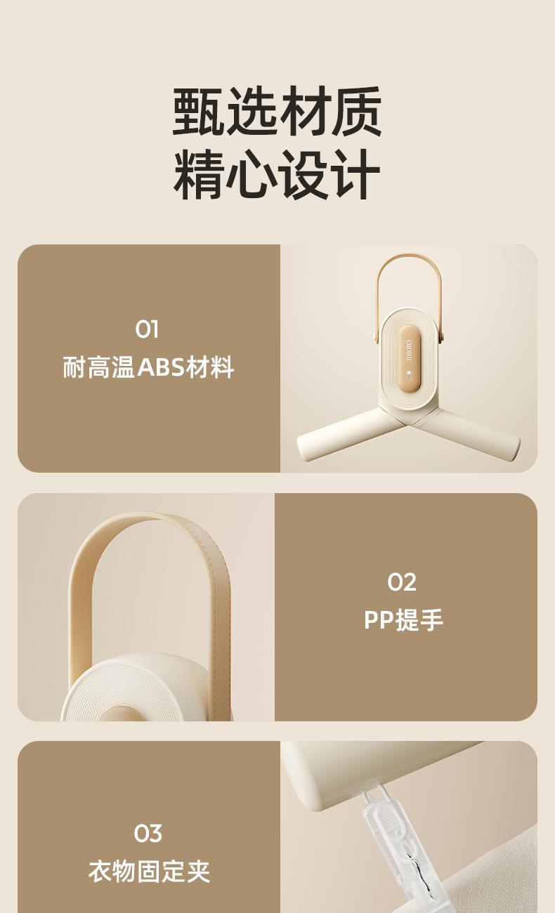 主要材质:ABS 电压:220V 功率:230W 1、2段伸缩,满足不同类型衣物烘干 2、小巧便携,适合外出游玩、出差使用 3、60-80℃烘干温度,快速烘干衣服 4、一键操作,操作方便快捷 5、360°旋转风格,能烘衣服,也能烘鞋