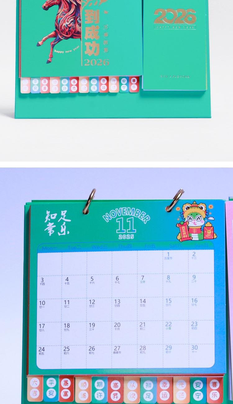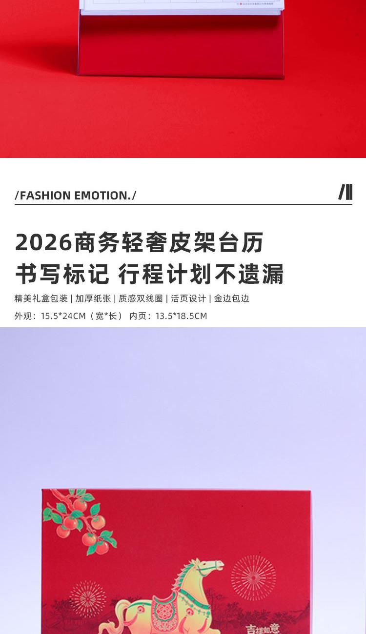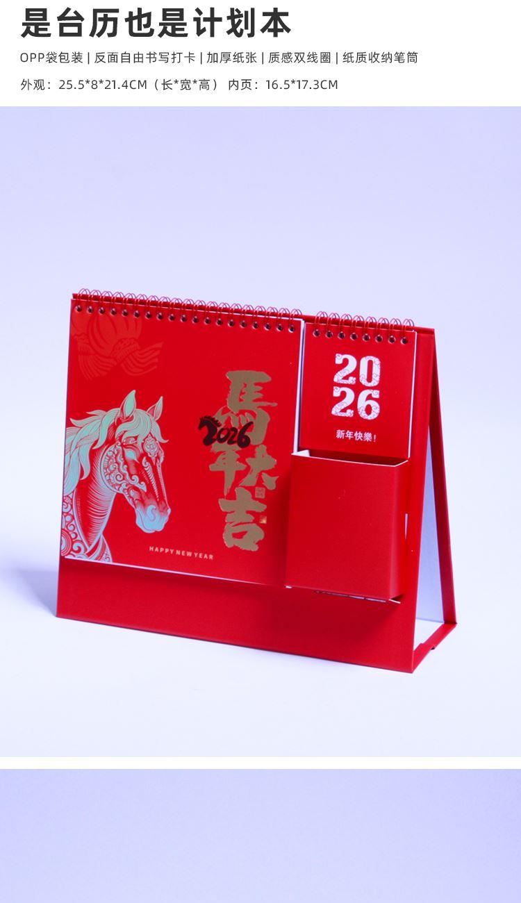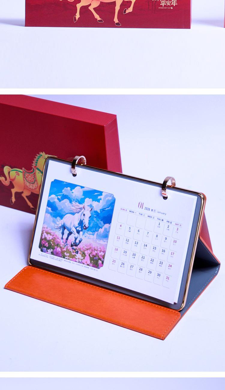 下单请咨询客服 包装OPP袋-彩盒 材质 台历封面350克白卡,内页180克白牛皮纸 封面250克铜版纸双面覆膜 台历架外纸157克铜版纸复膜,台 历架内衬纸70克双胶纸,台历架纸板2.2厚 尺寸 成品尺寸:128x215mm 内芯尺寸:128x173mm 广告尺寸:128x40mm