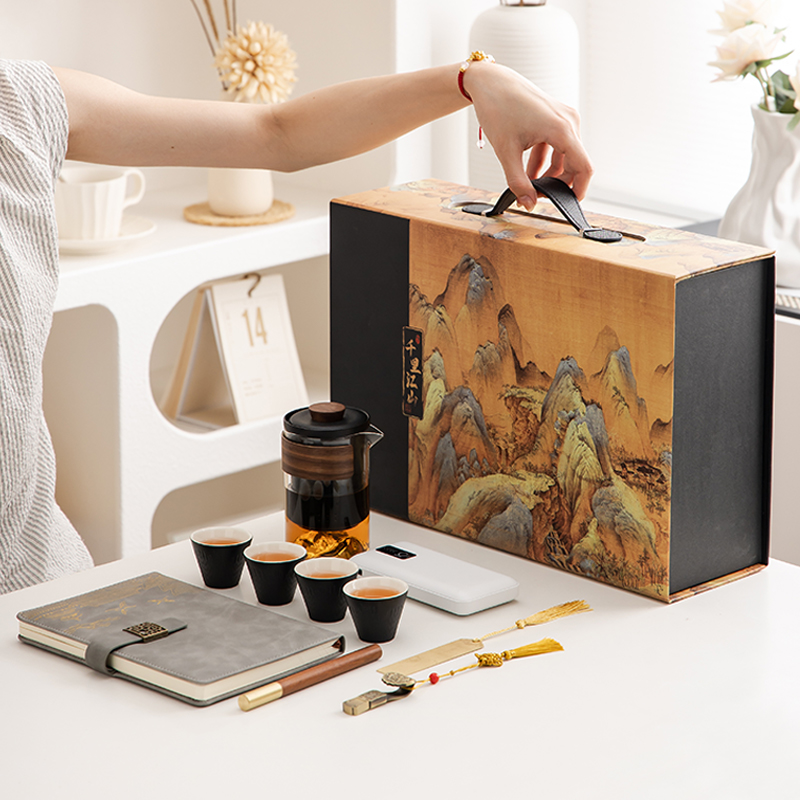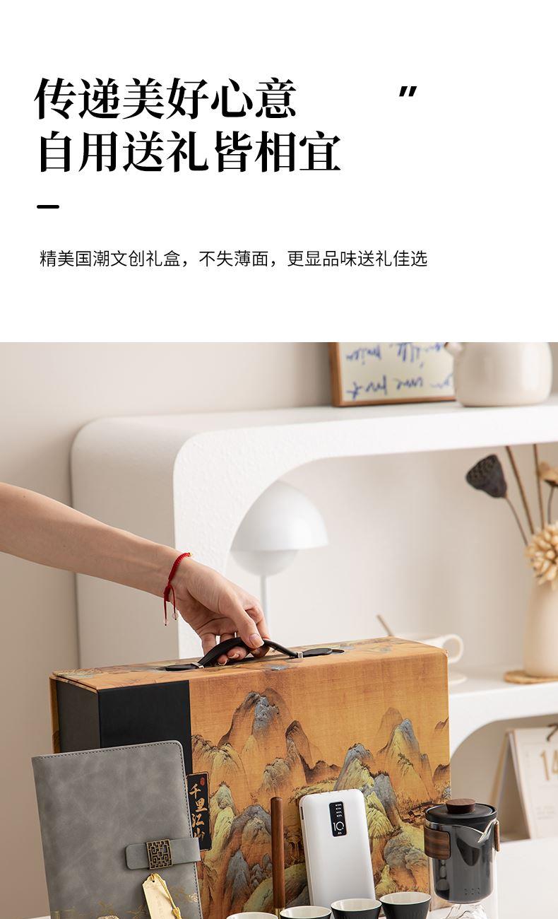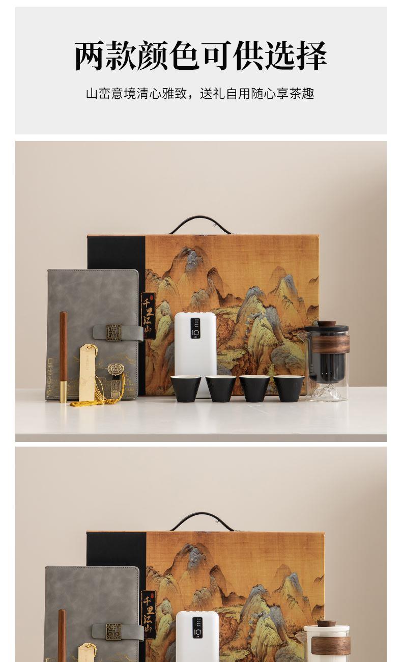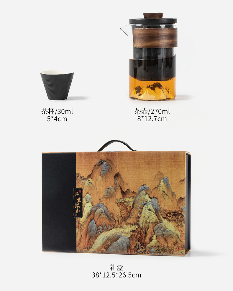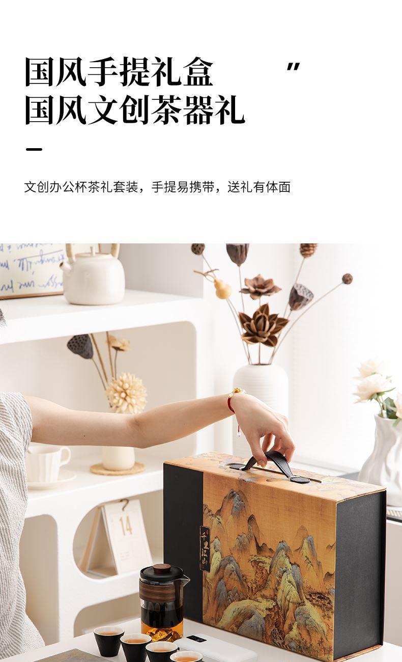 尾桥下窑粗陶千里江山玻璃快客商务茶具套装年会礼品伴手礼组合