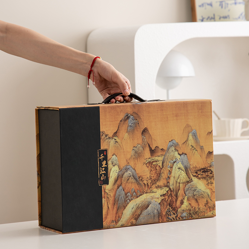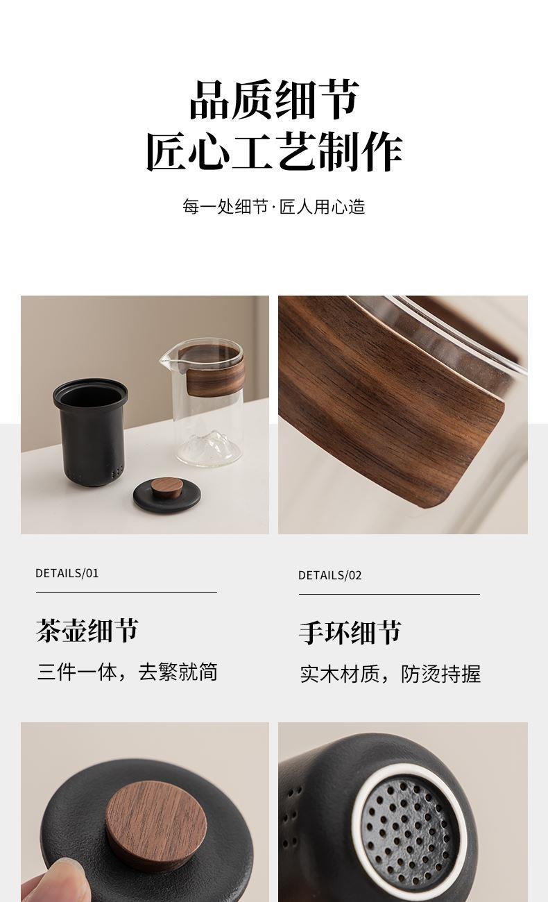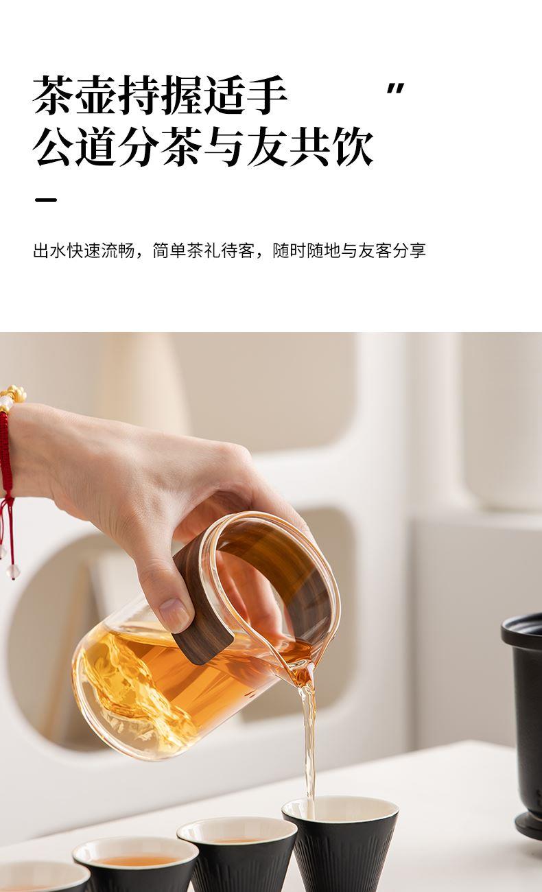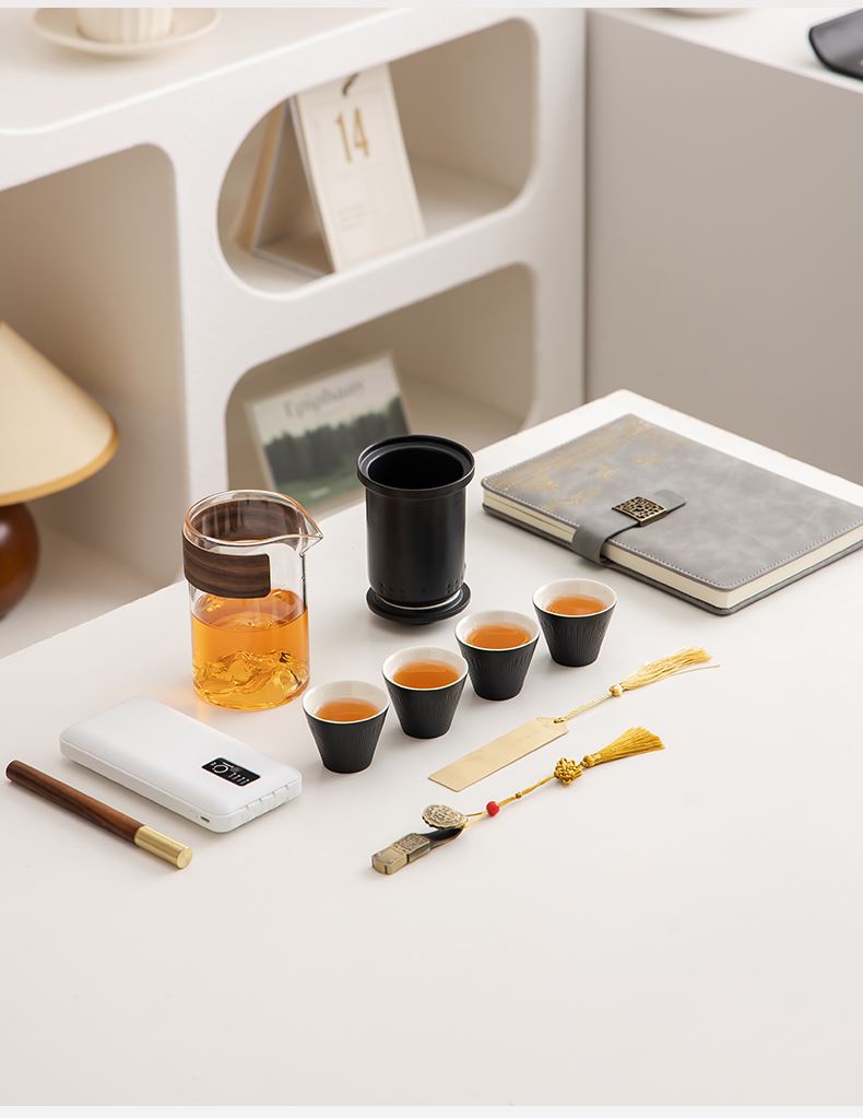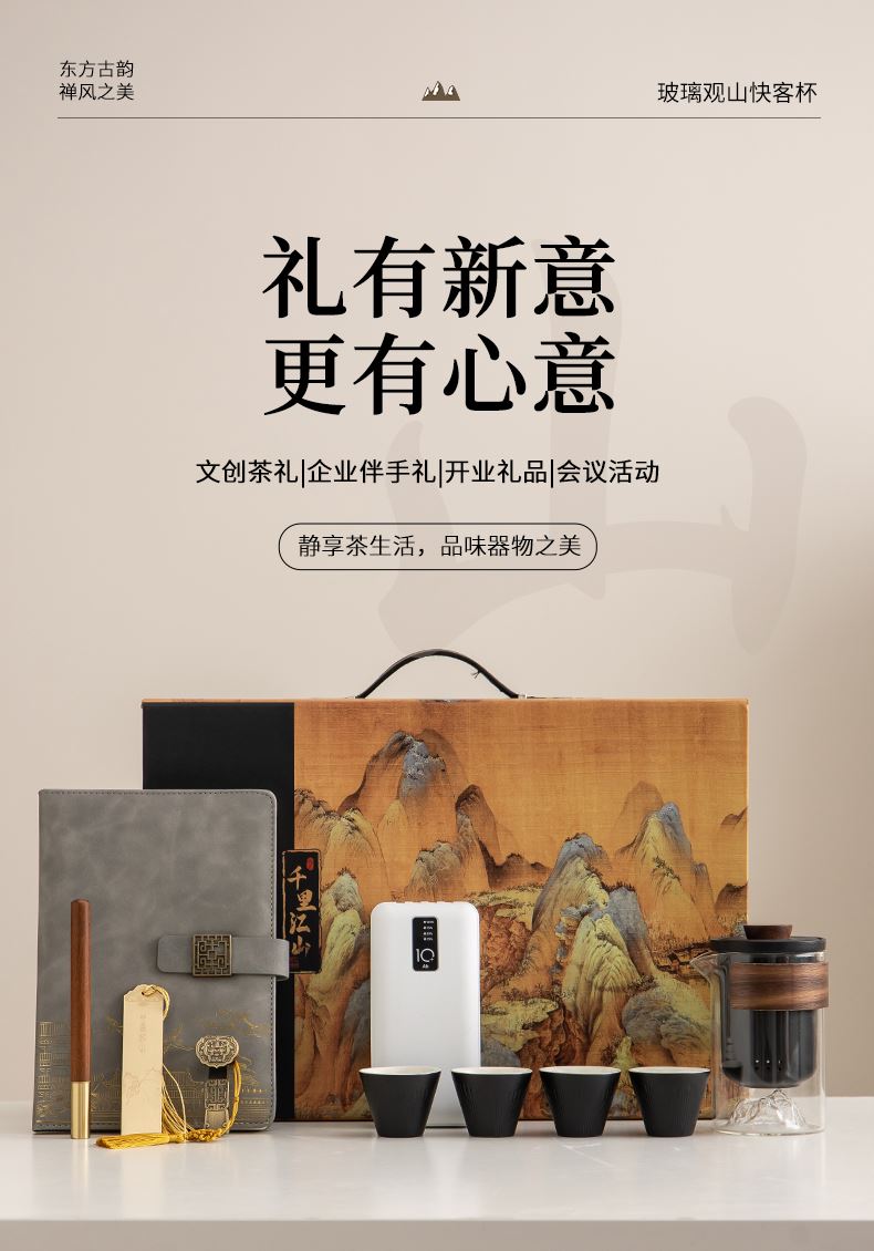 尾桥下窑粗陶千里江山玻璃快客商务茶具套装年会礼品伴手礼组合