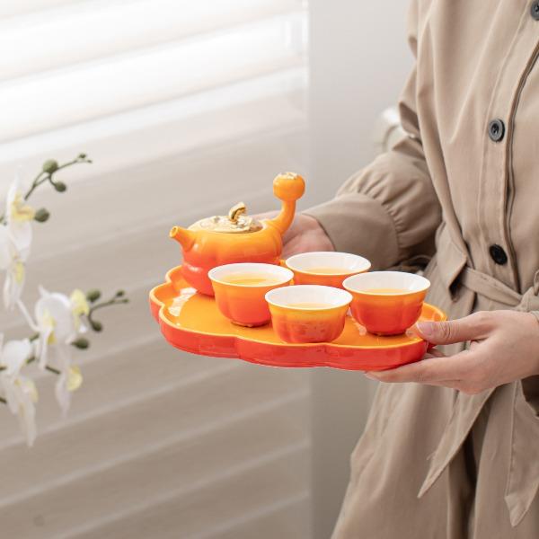 壶:11*8.6厘米150ml 茶海:9.8*5厘米170ml 品茗杯:6.2*4厘米50ml 茶盘:25*19*1.8厘米 礼盒:30*23*12厘米 造型形象生动,寓意美好,天然矿物釉,高温烧制无铅镉 ,瓷胎密实不吸茶香,久用更显韵味 。
