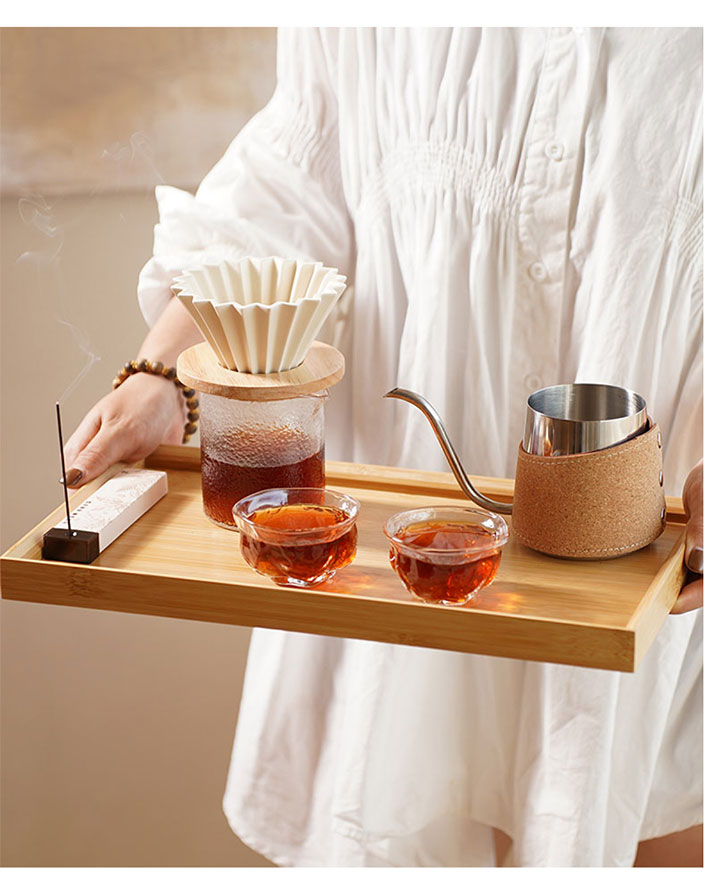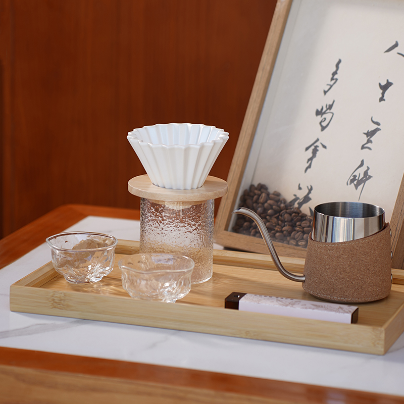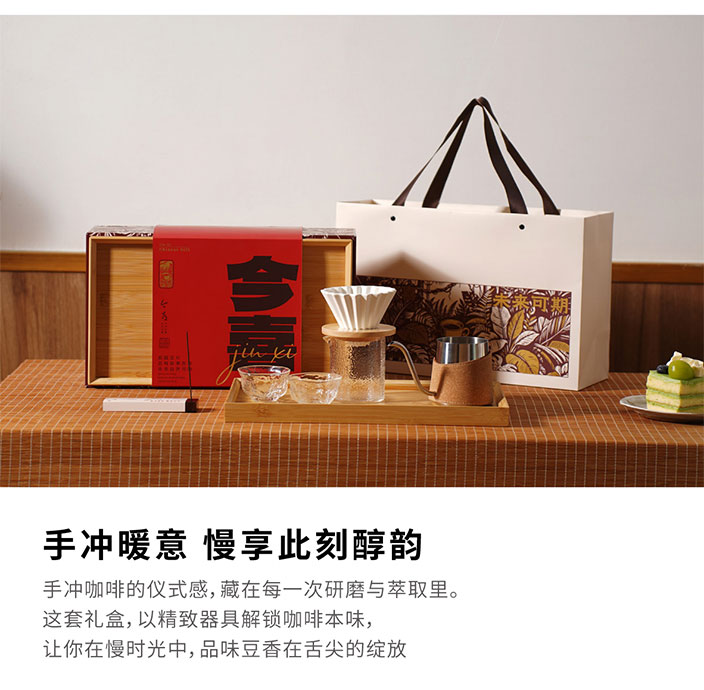 产品尺寸: 手提袋: 390*145*250mm 礼盒: 381*281*135mm 竹托:100*100*15mm 折纸滤杯:103*103*85mm 核桃纹玻璃杯:74*74*44mm 咖啡线香:5g 产品配置: 竹制托盘x1,不锈钢手冲咖啡壶x1, 咖啡线香x1,核桃纹玻璃杯x2, 折纸滤杯x1,竹托x1,玻璃分享杯x1