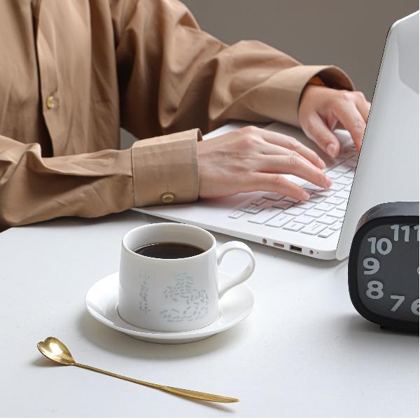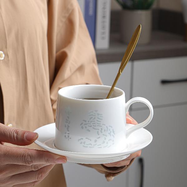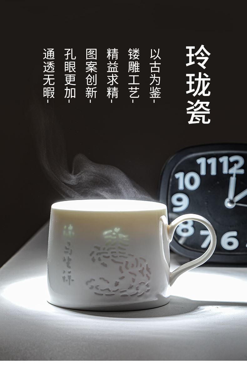 瓷语花香瑞马生祥玲珑咖啡杯商务套组