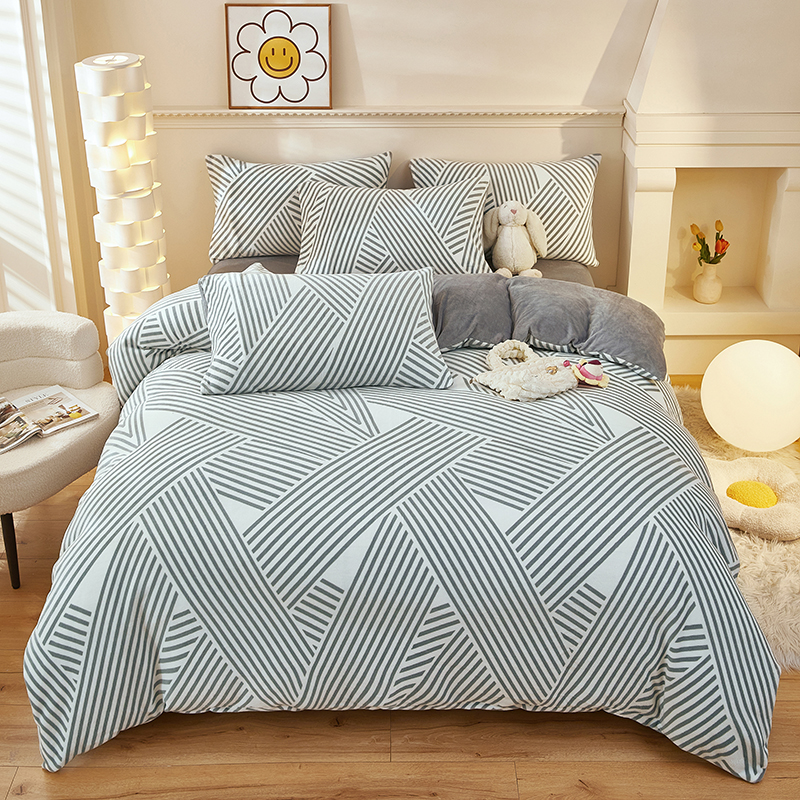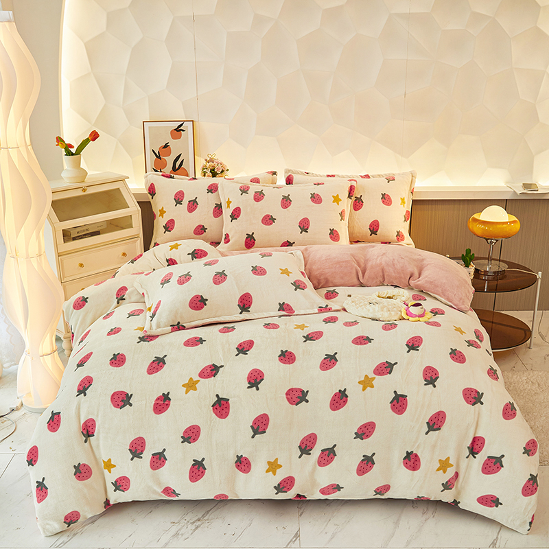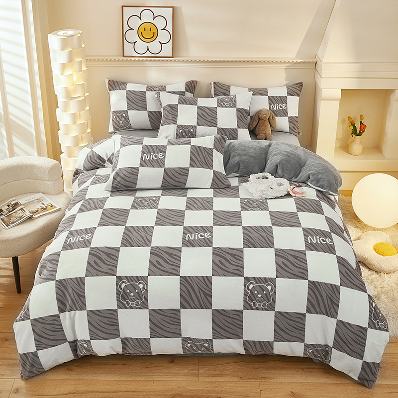 花花公子-家纺-8斤牛奶绒印花保暖冬季御寒四件套