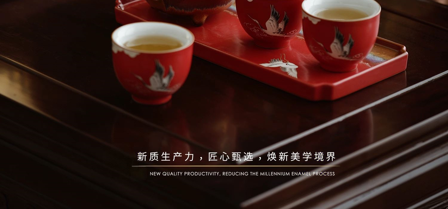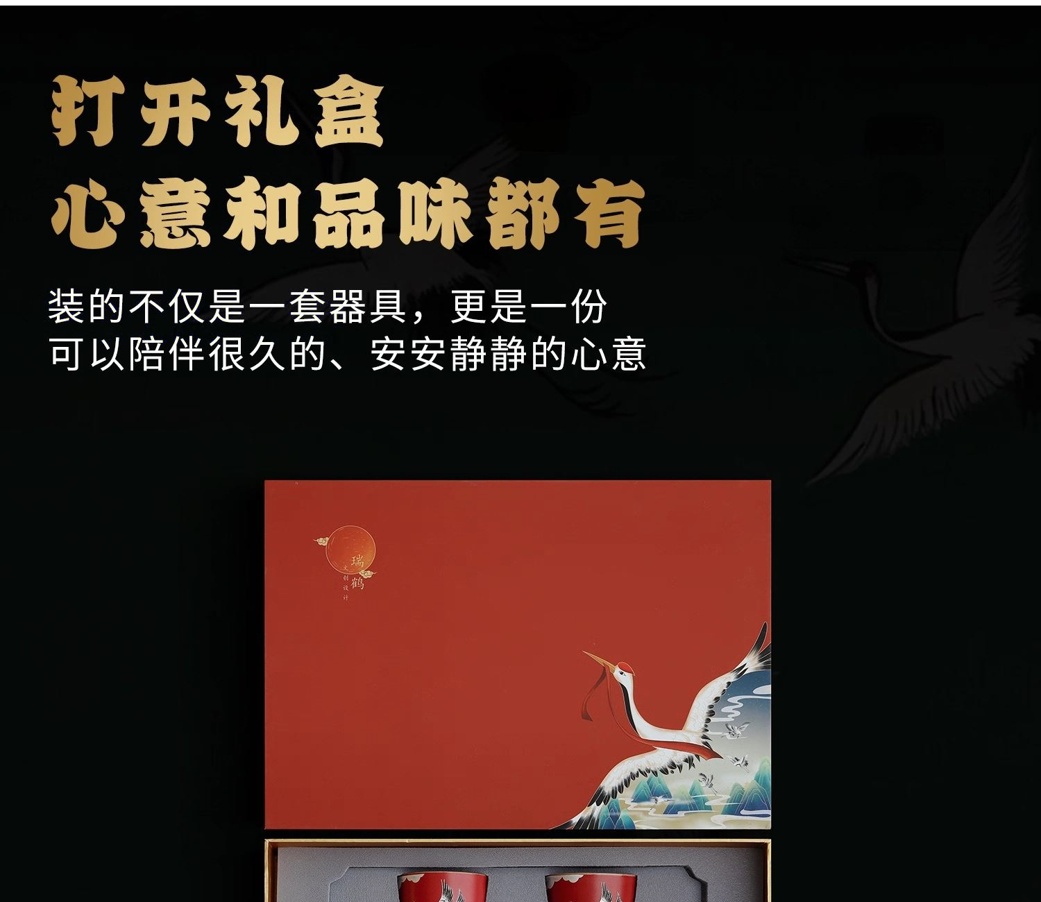尾桥下窑宫墙红窑变瑞鹤呈祥提梁煮茶壶茶具套装年会开门红伴手礼