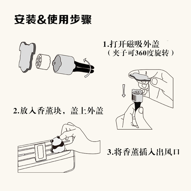 途雅熊猫花花出风口香薰-对装(熊猫2)N1838PP