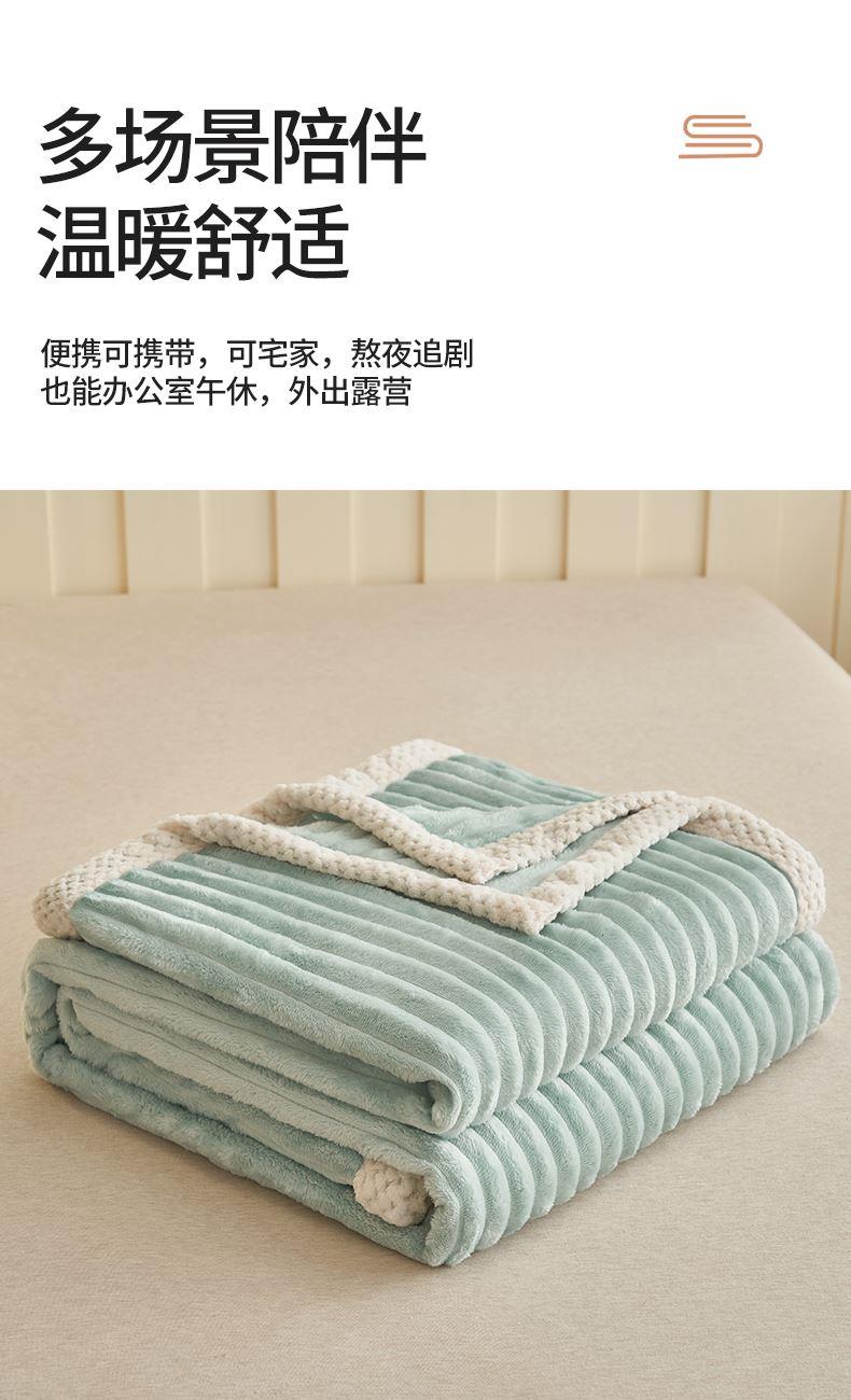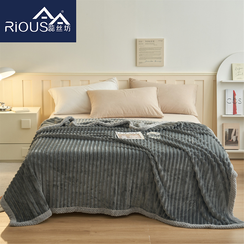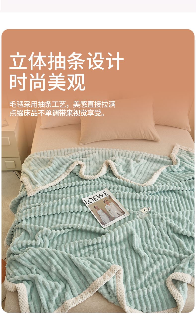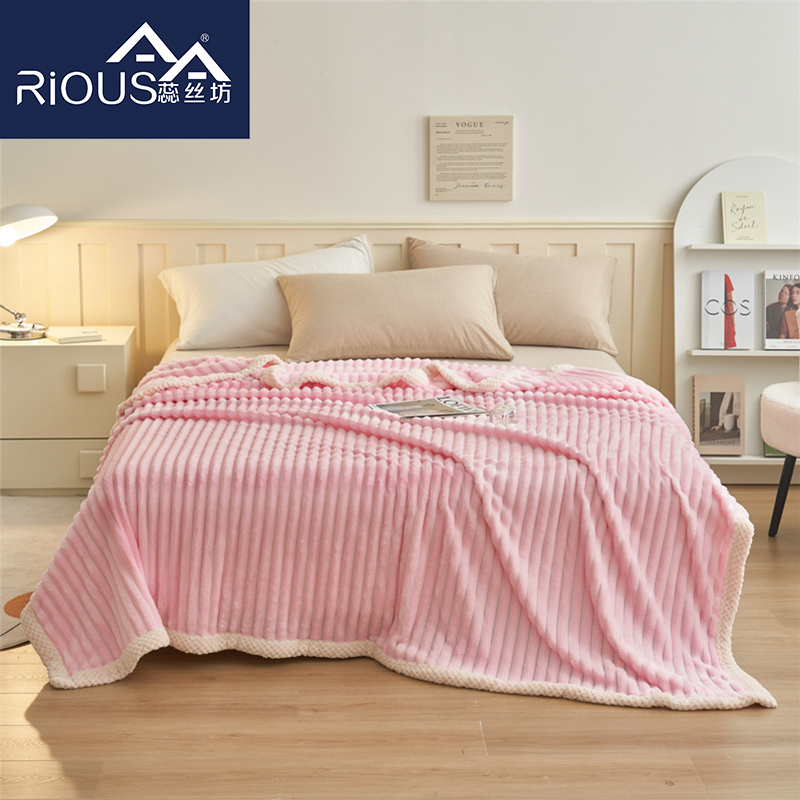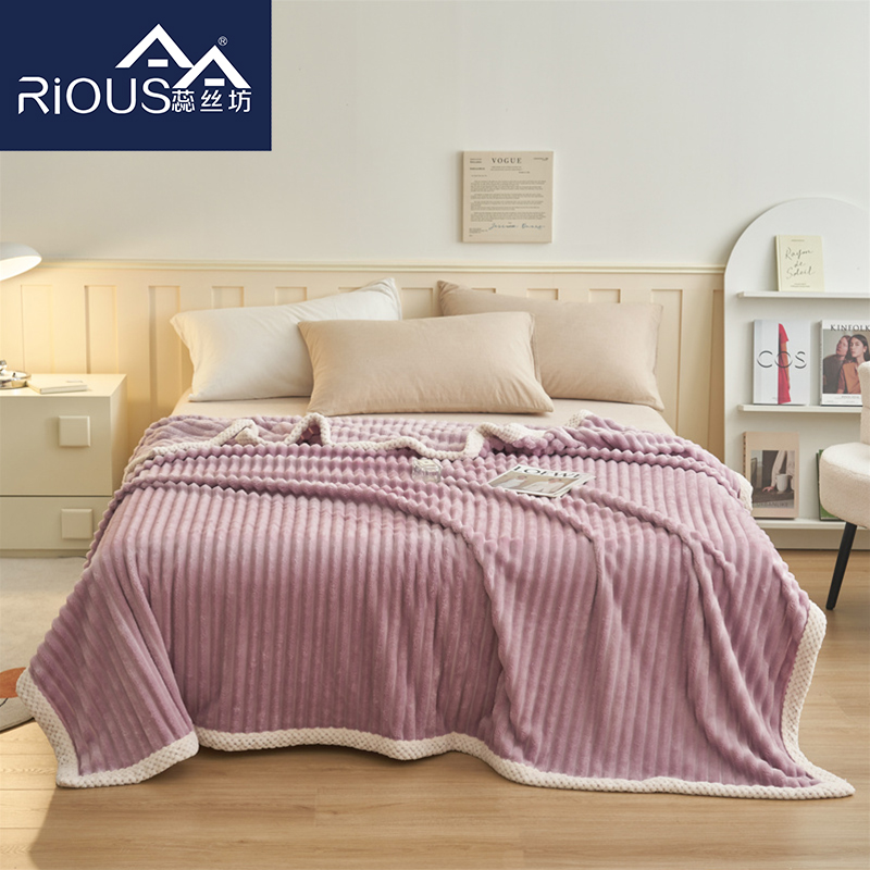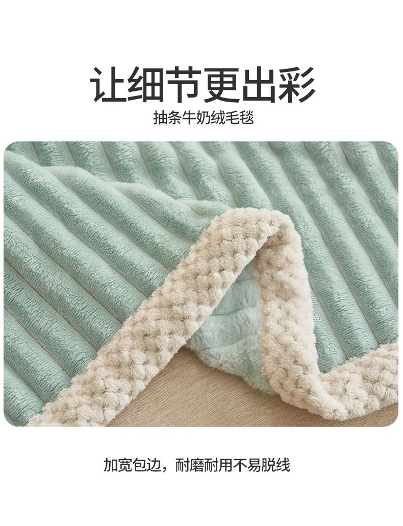 蕊丝坊家纺新款抽条牛奶绒午睡休闲毛毯180x200cm