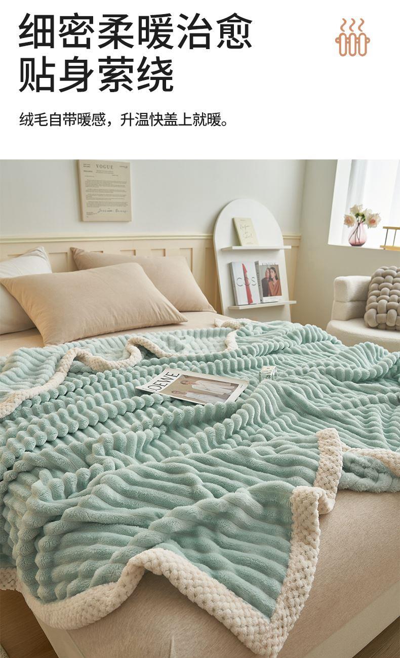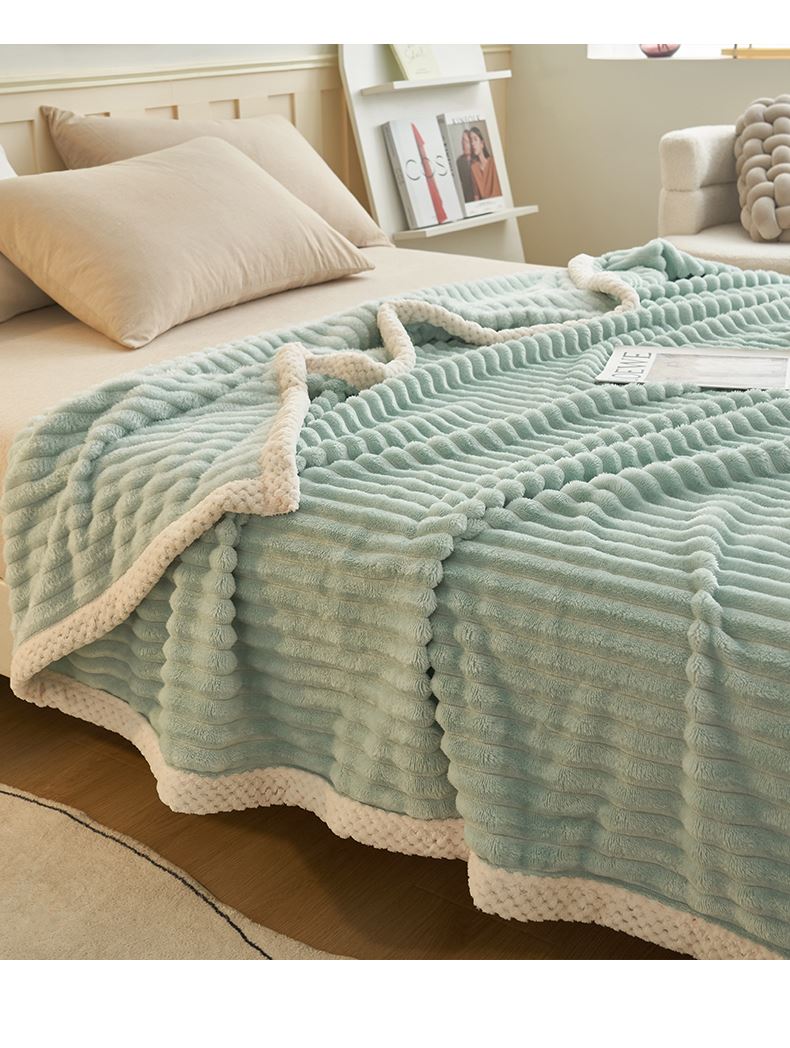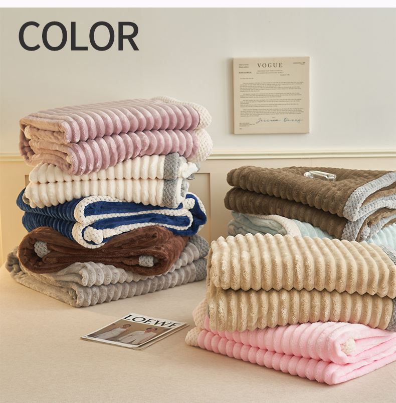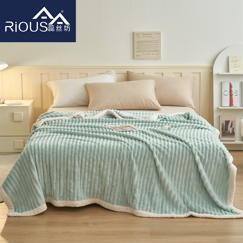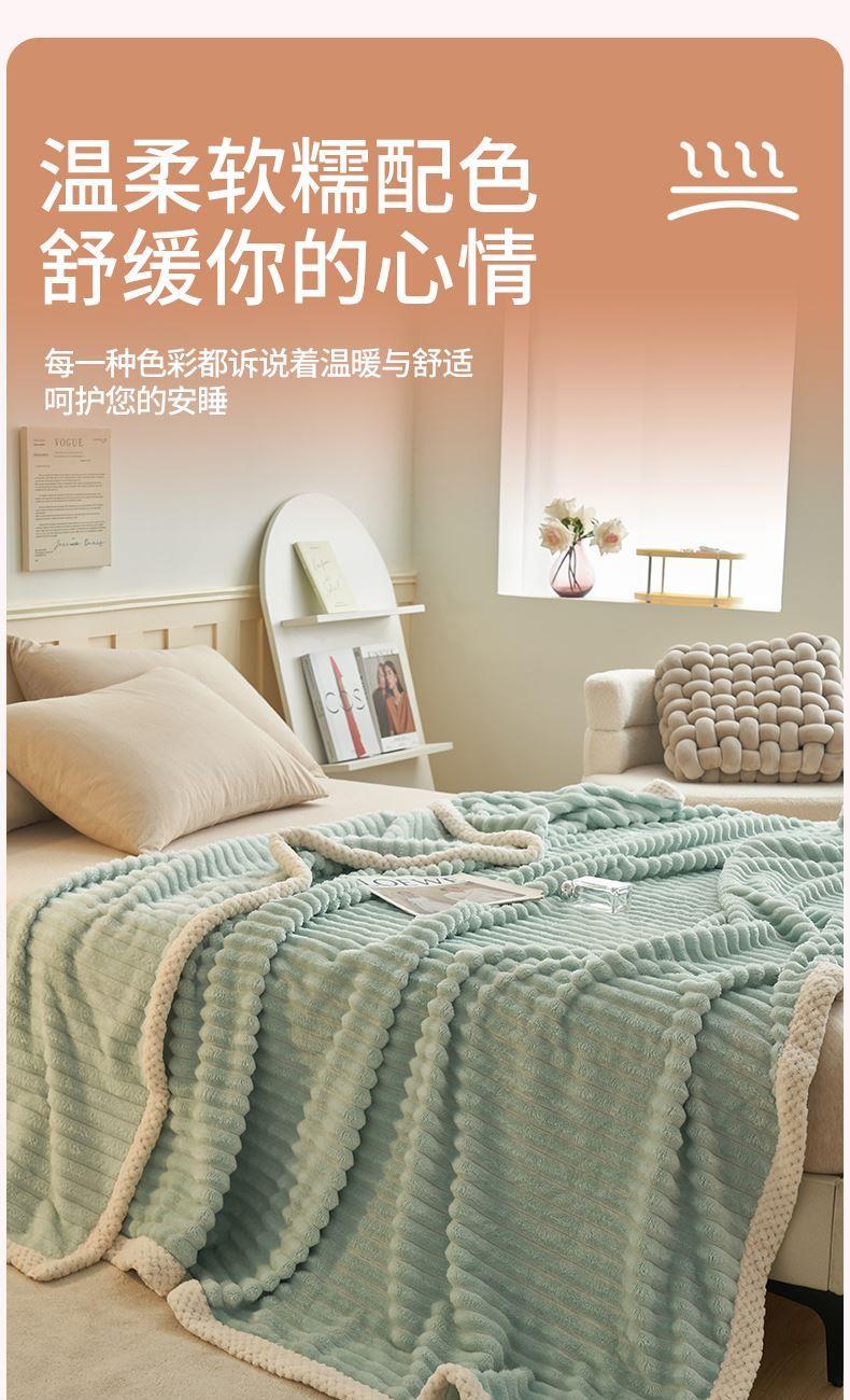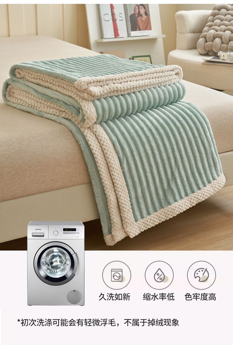 蕊丝坊家纺新款抽条牛奶绒午睡休闲毛毯180x200cm