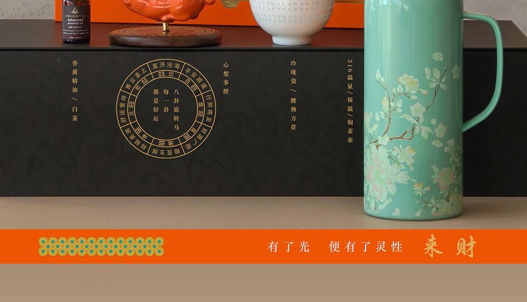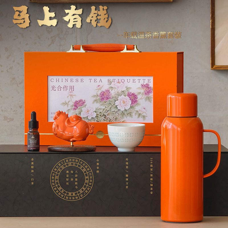 配置2:马上有钱转转马+保温壶橙+玲珑杯+白茶精油,
