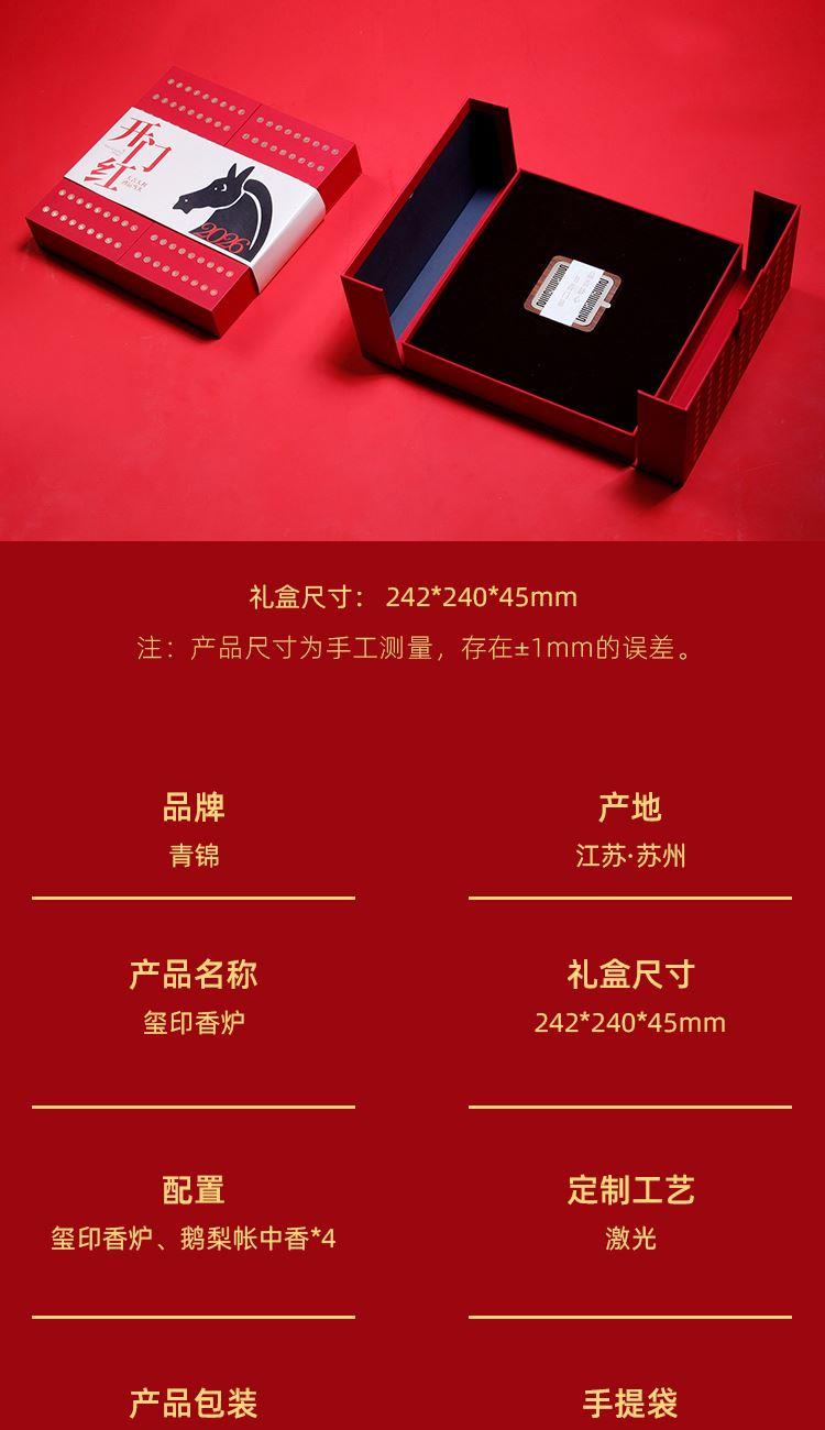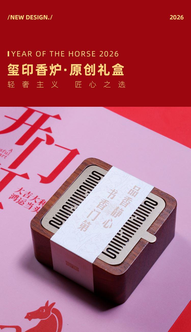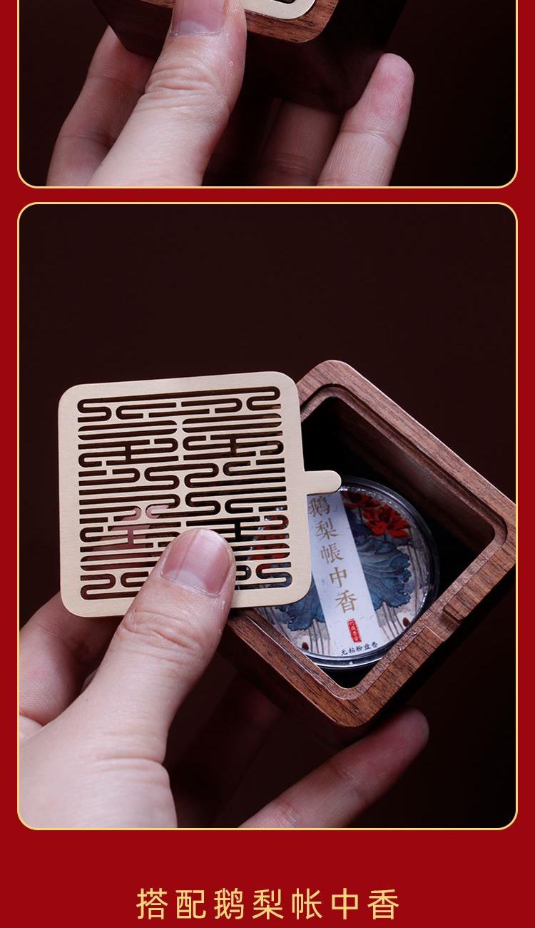 玺印胡桃木香炉x1 鹅梨帐中香* 4 礼盒*1 手提袋*1