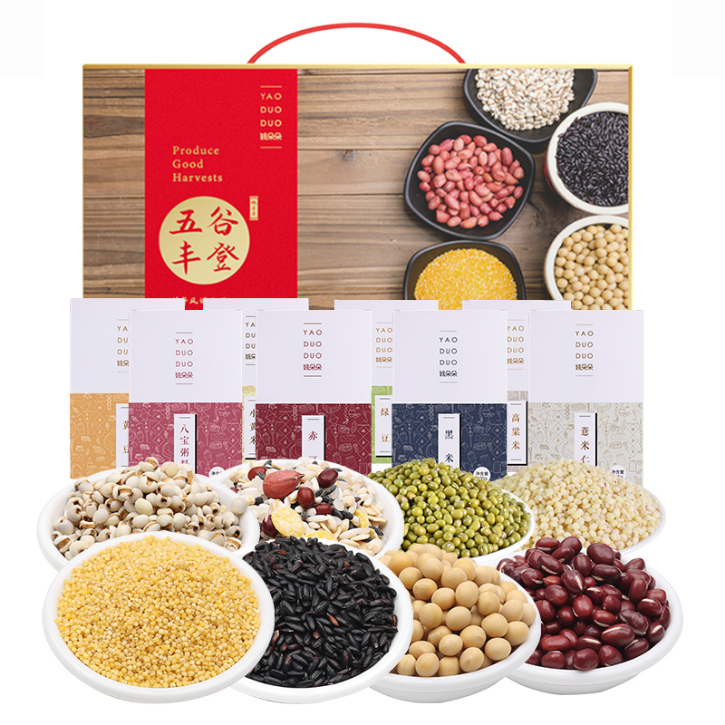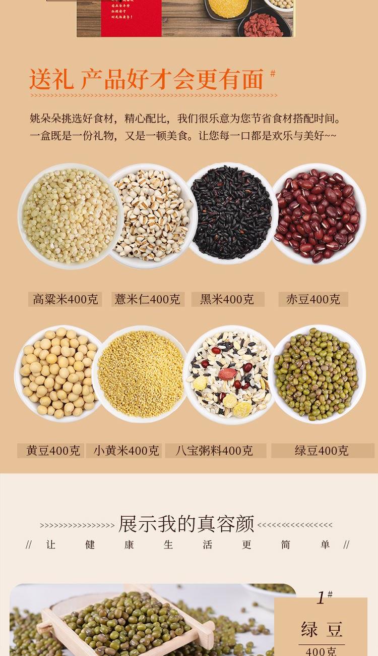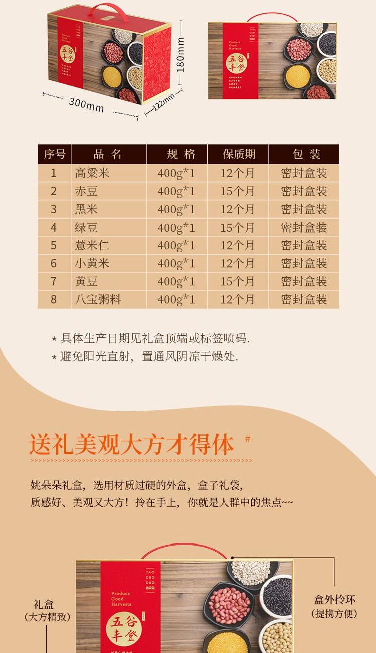 黄小米400克 八宝粥料400克 赤豆400克 薏仁米400克 绿豆400克 黄豆400克 黑米400克 高粱米400克 五谷丰登礼盒(红色)