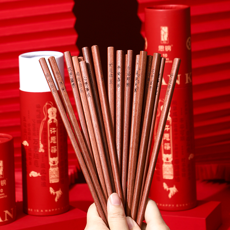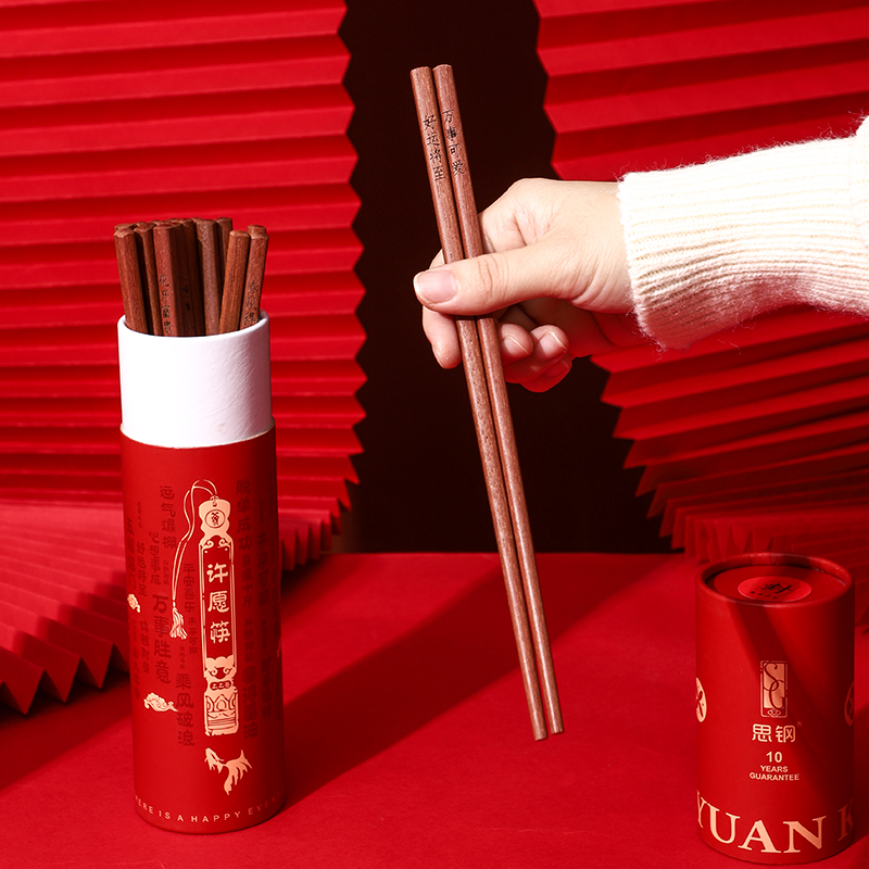 筷头刻字,许愿抽签随意抽取任意一对,都能连成一句美好的祝愿。